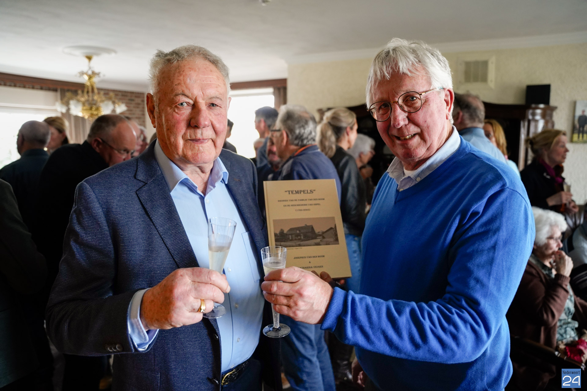 In een bomvolle woonkamer van Con van Nieuwenhoven werd zaterdagmiddag het ‘Tempelsboek‘ gepresenteerd. Con van Nieuwenhoven en Peter van den Boom spraken de tientallen aanwezigen toe. Na de onthulling werd er met z’n alle geproost het op bijzondere moment.
