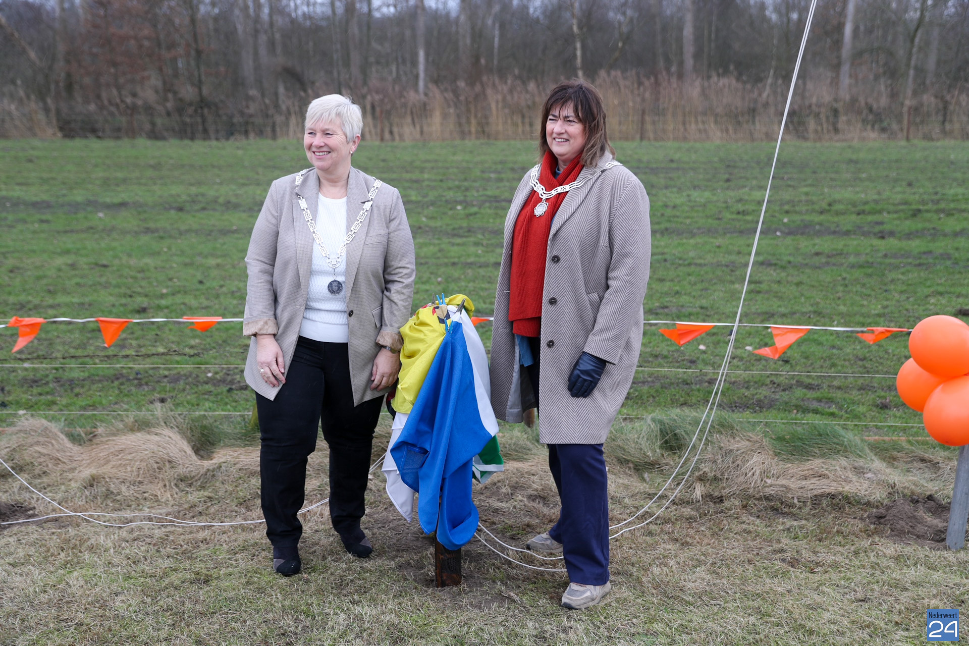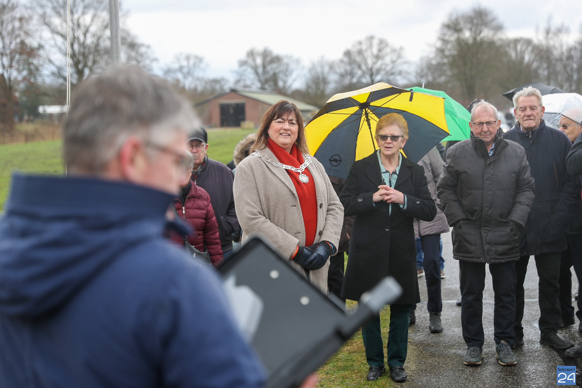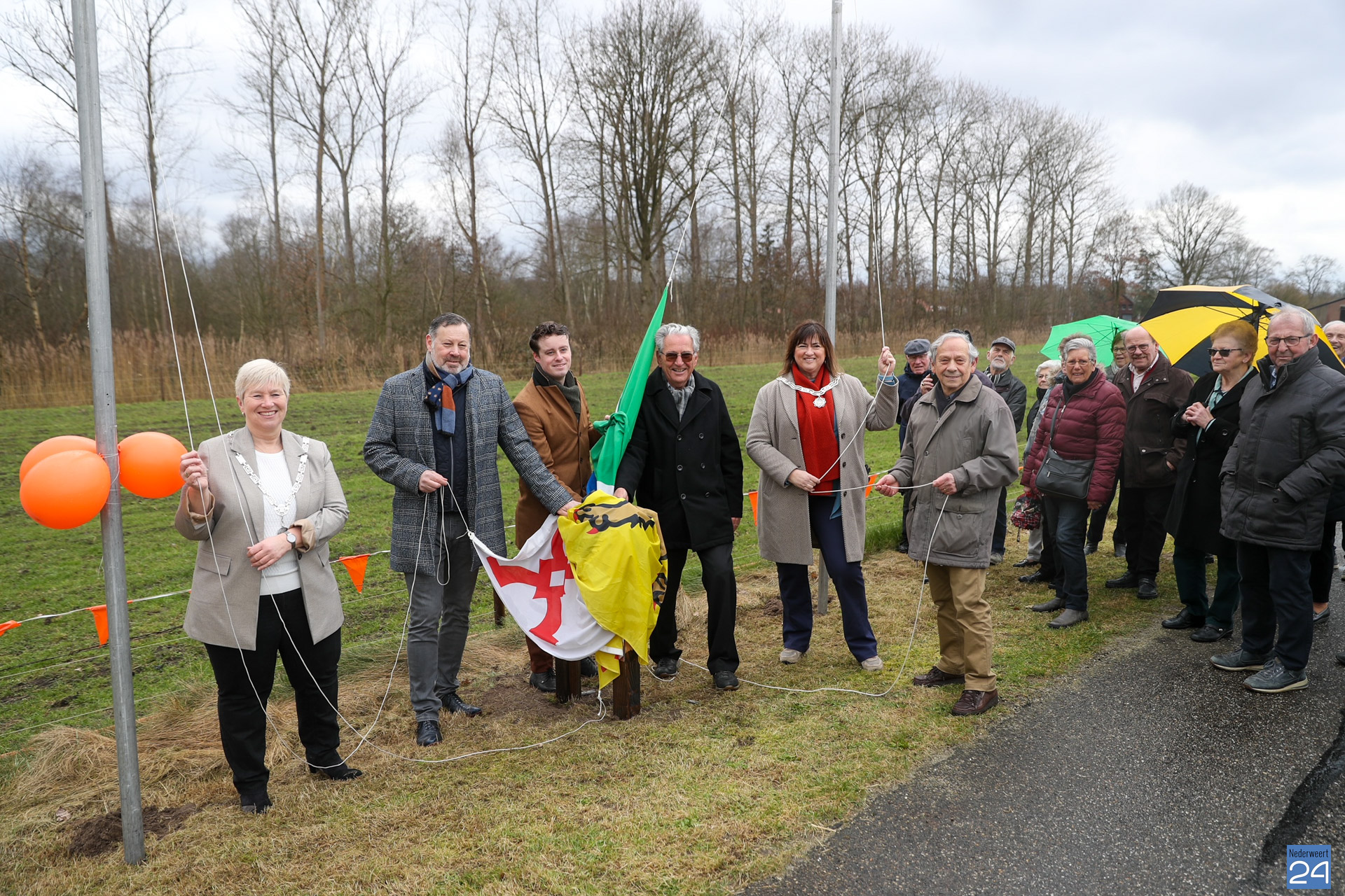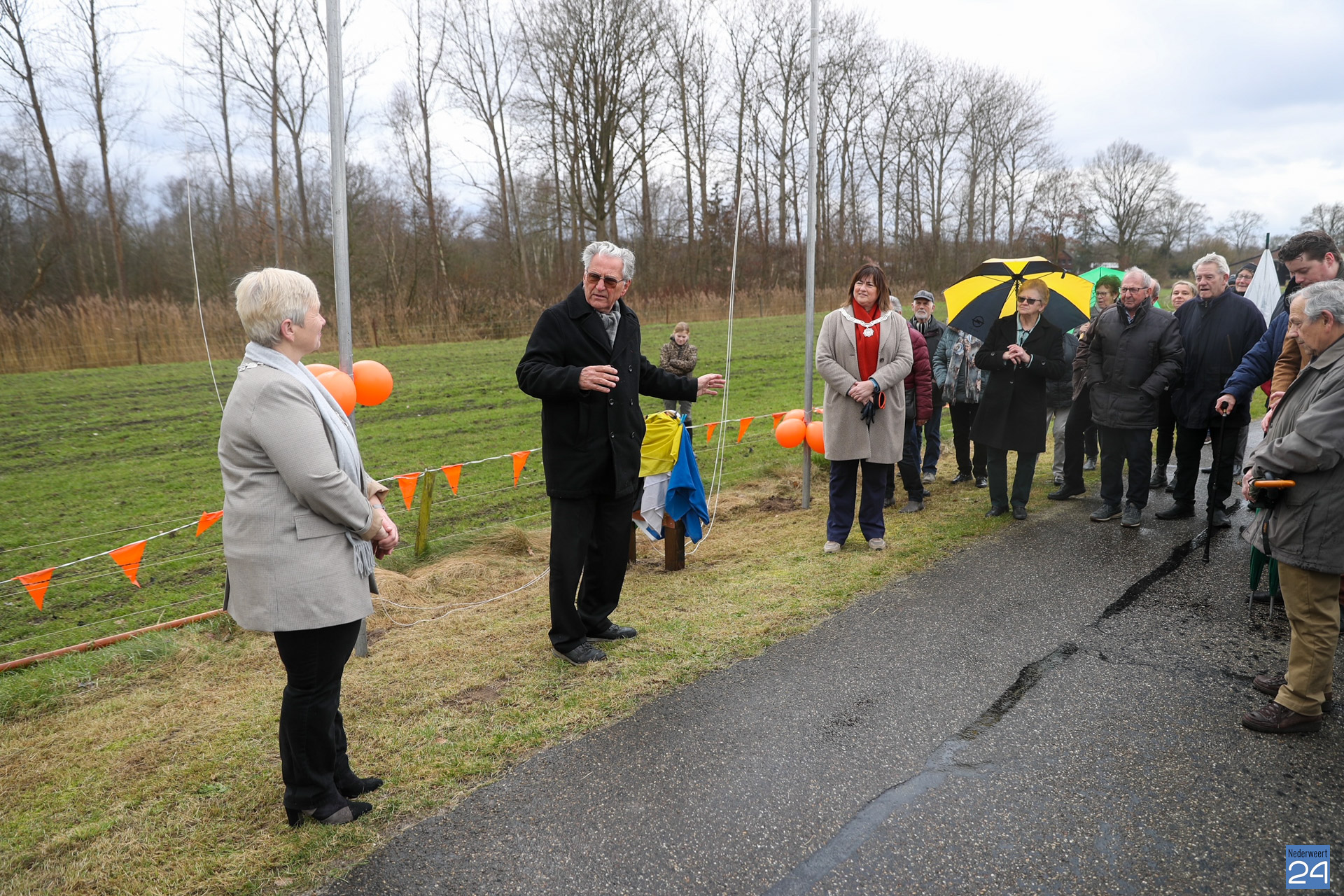 Burgemeesters Blok en Op de Laak van Someren en Nederweert onthulden zondagmiddag aan de Dooleggersbaan een informatiebord. Ook de wethouders van beide gemeenten en andere belangstellenden waren bij de onthulling aanwezig.