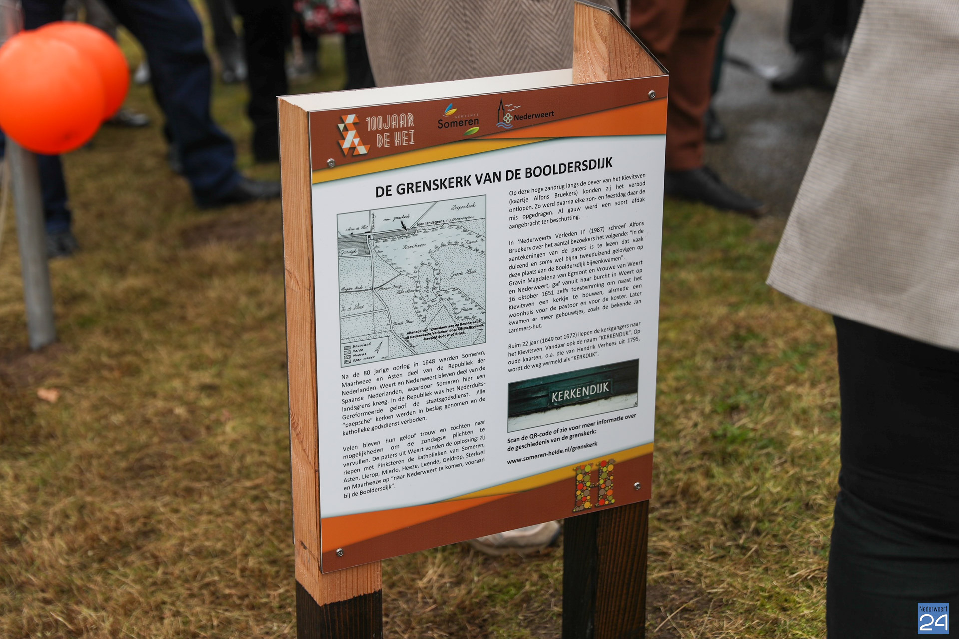 Het informatiebord gaat over de grenskerk uit de 17e eeuw, waaraan de Kerkendijk zijn naam heeft te danken. Aansluitend vond er een presentatie van het boek “Honderd Jaar de Hei, Van ontginningsdorp naar moderne samenleving” plaats in gemeenschapshuis de Bunt.