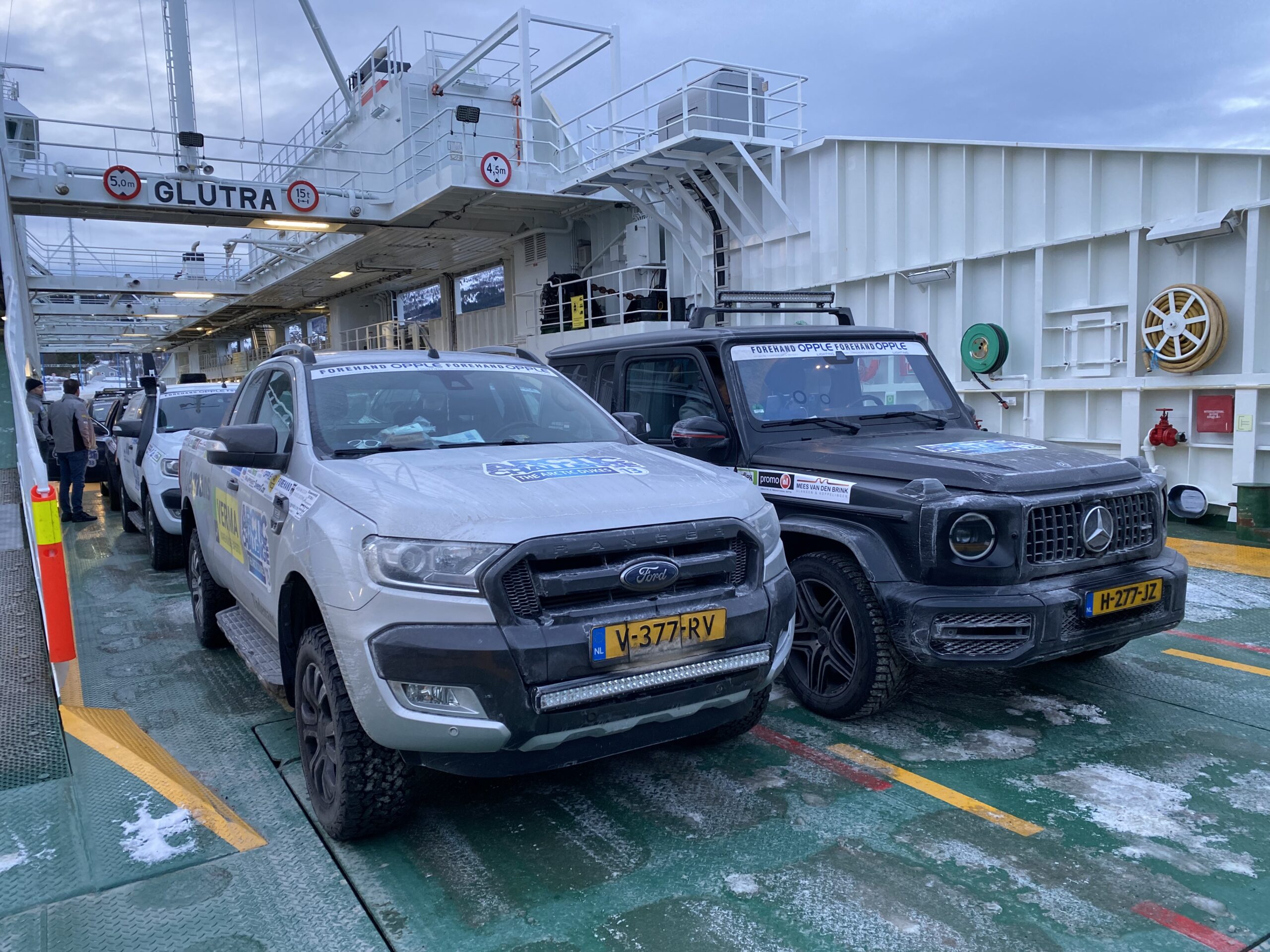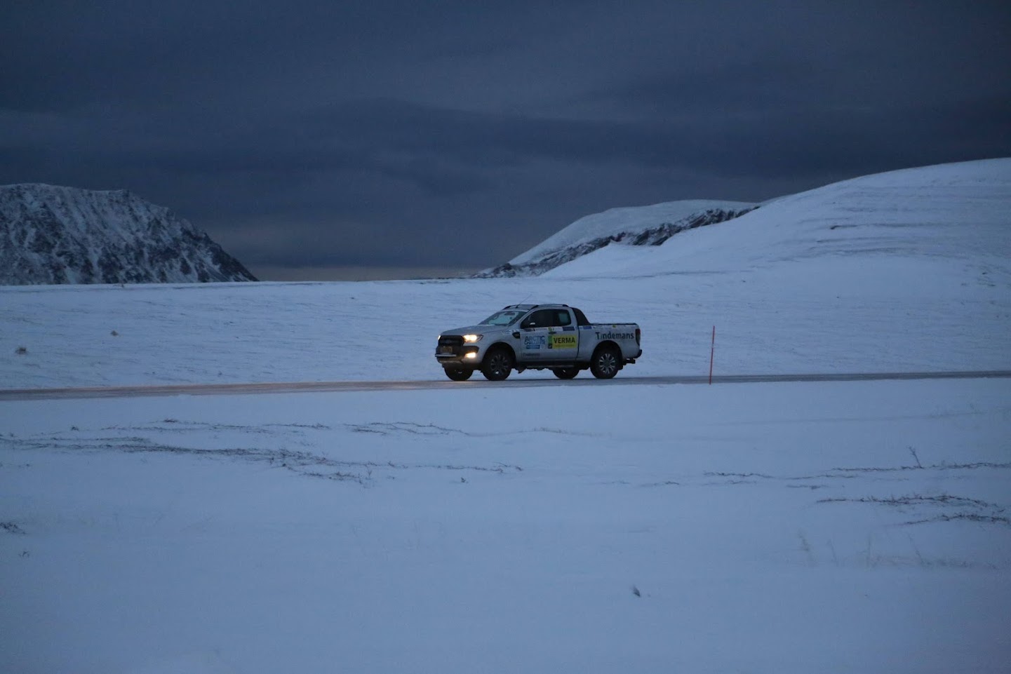 Wanneer Stijn een programma over The Arctic Challenge op tv ziet en zijn kriebels met Rob deelt, hoeven de twee vrienden dan ook niet lang na te denken. Ze schrijven zich in voor de editie van 2023. Stijn: “Onze vrienden, Christ-Jan van Haperen en Koen van Bussel, wilden ons per se ondersteunen. Met de financiële bijdrage van Christ-Jan is de Ford bij Autokoen volledig geprepareerd.” Rob knikt instemmend en vult aan: “De auto is verhoogd, heeft speciale winterbanden gekregen, speciale vloeistoffen voor extreme kou en een led lichtbalk boven de grill. Verder moest er een omvormer komen, zodat we onderweg thee, koffie en uiteraard tosti’s – onze grote favoriet – konden maken.