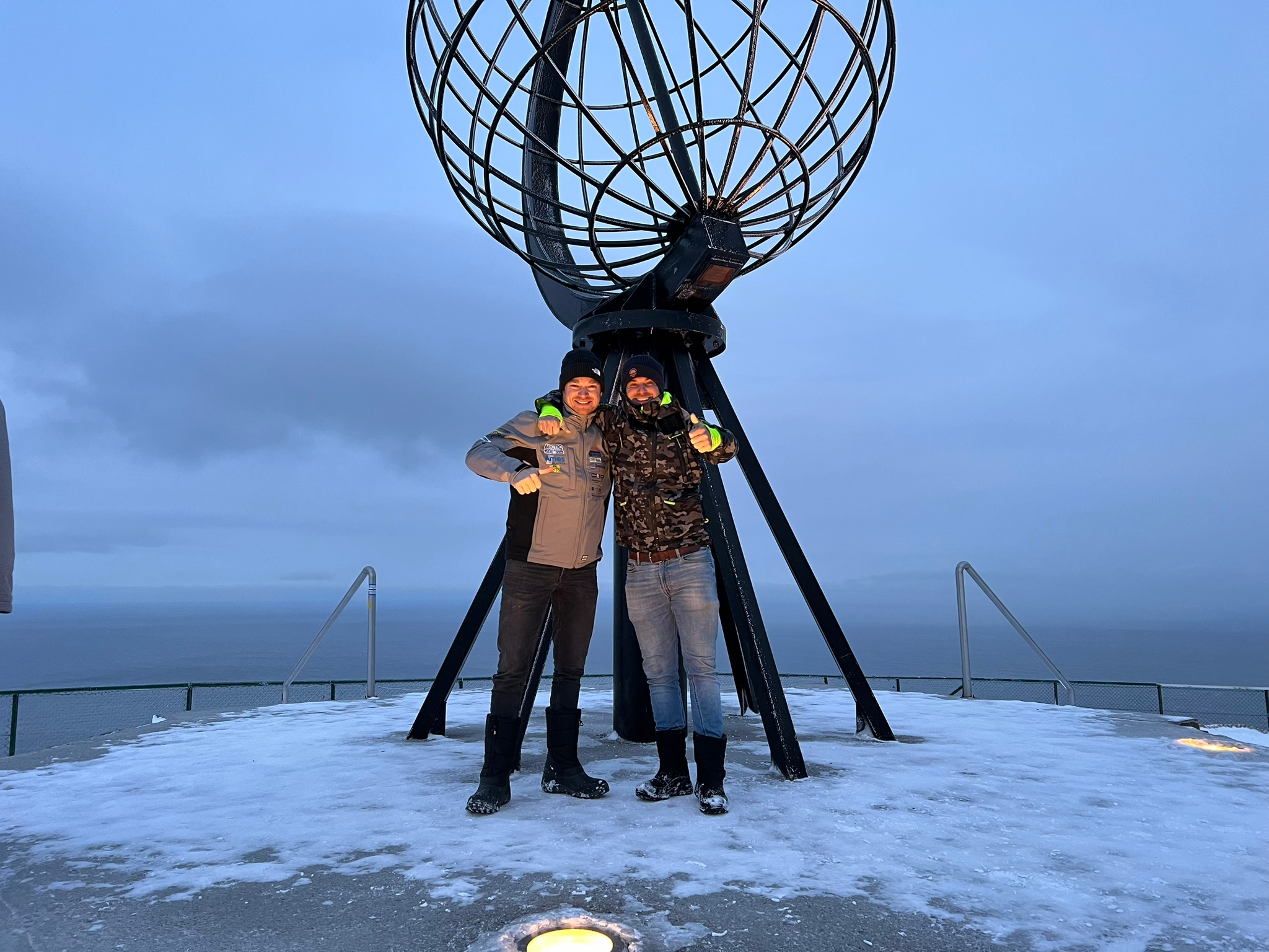 Na een goede nachtrust rijden ‘the dukes’ door de streek rondom Ballangen, langs prachtige berggroeven, naar Alta voor de tweede overnachting. “Op maandag gingen we in colonne naar de veelbelovende Noordkaap. In de snijdende noorderwind pakte daar iedereen heel snel een fotomomentje”, lachen de heren. “Het was ijs- en ijskoud, er was niets te zien, zelfs maar een glimp van het noorderlicht. We hadden echt het gevoel alsof we aan het einde van de wereld waren.