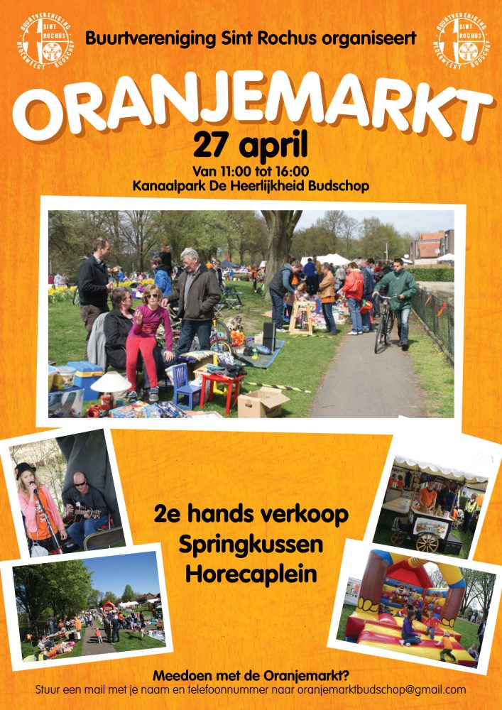 Buurtvereniging Sint Rochus organiseert op donderdag 27 april weer de jaarlijkse Oranjemarkt van 11.00 – 16.00 uur.