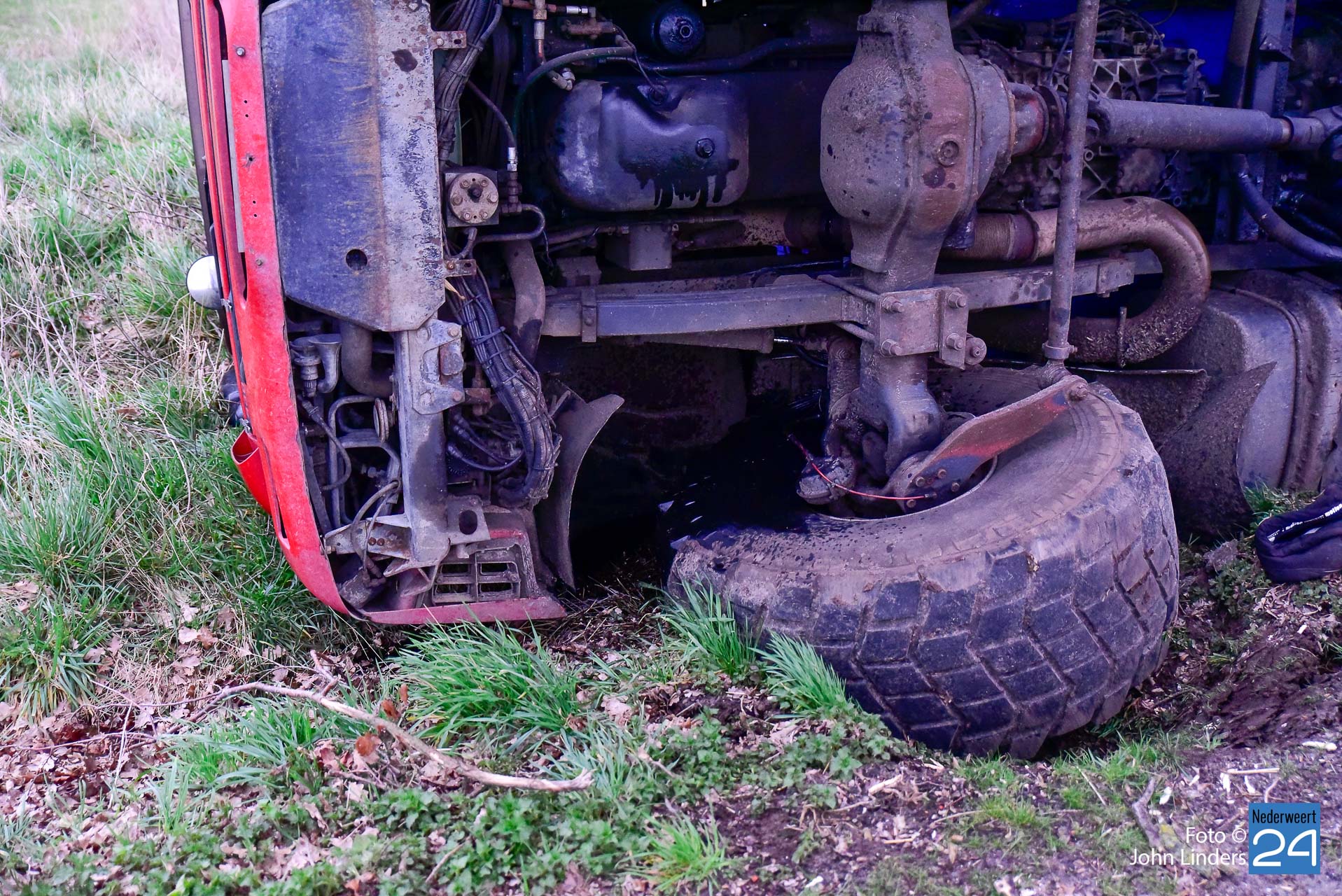 Een vrachtauto met 35m3 mest moest zijn vracht op de Moostdijk in Ospel lossen in een container. Bij het uitwijken voor een tegenligger ging het mis. De vrachtauto kwam in de vochtige berm en viel toe heel rustig om.