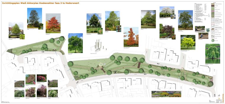 De woonwijk Hoebenakker. Een ruim opgezette woonwijk met veel groen. Om bij hevige buien het water op te vangen, gaat de gemeente een groene wadi aanleggen aan de Leerlooier. Een stuk openbaar groen met potentie en dus hebben ze omwonenden gevraagd mee te denken over de inrichting. Met het gezegde ‘zoveel mensen, zoveel wensen’ werkten ze stapsgewijs toe naar een schets van het gebied. Het uiteindelijke ontwerp mag er zijn. Vol trots presenteert de gemeente het plan ‘wadi Akkerplas’ dat je op deze pagina kunt bekijken.