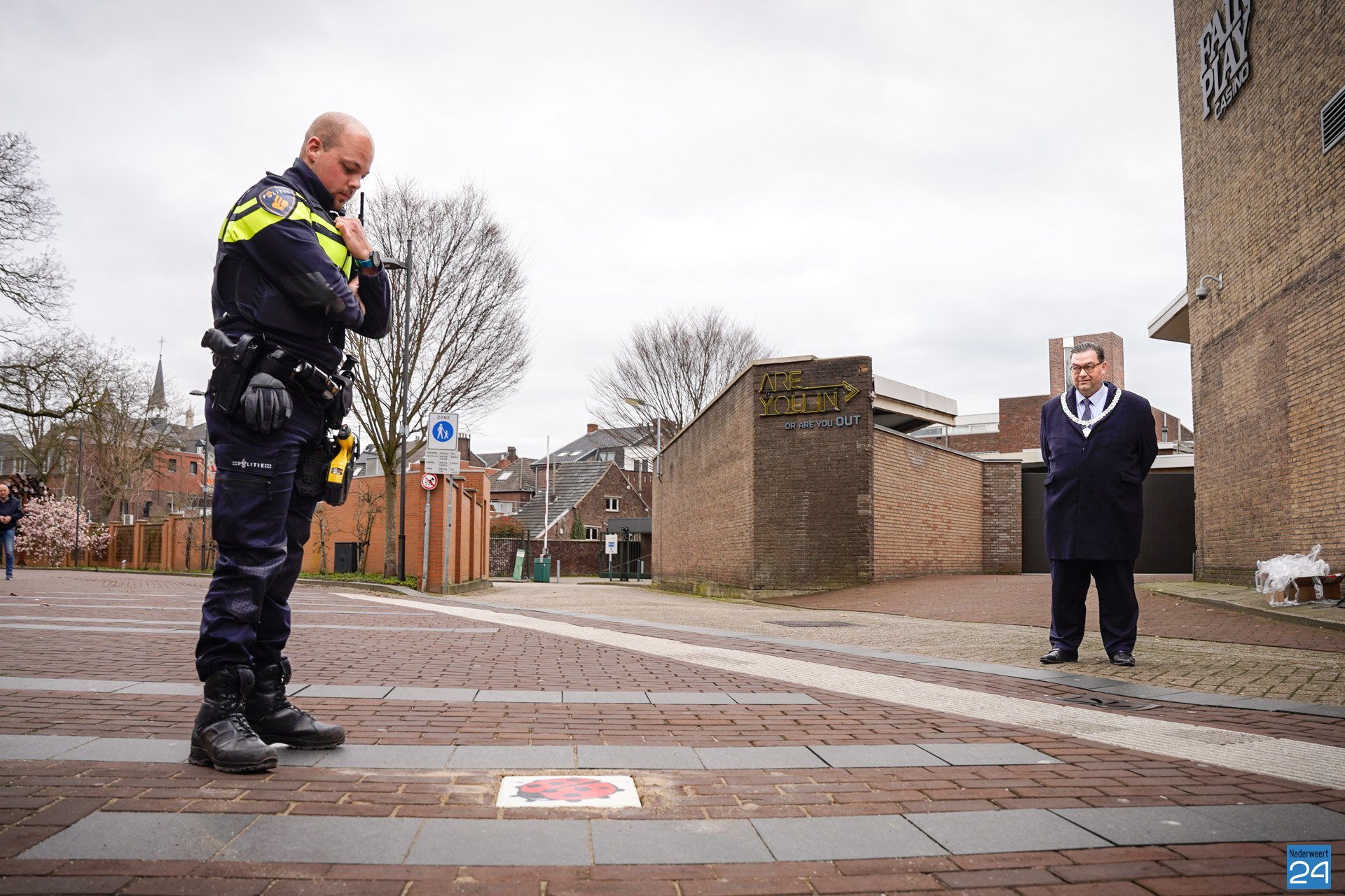 Het was een bijzonder en emotioneel moment voor politieagent Martijn (29) woensdagmorgen. Door hem werd een zinloos geweld tegeltje geplaatst aan het Sint Raphaelpad in Weert. In juli 2022 is Martijn op die plek zelf, in privétijd, het slachtoffer geworden van zinloos geweld. Daarbij heeft hij blijvend oogletsel opgelopen.