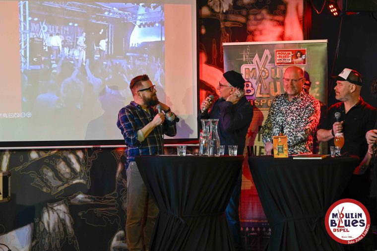 De Boventoon meets Moulin Blues, een opwarmertje voor het 35e Moulin Blues festival in het café van de Huiskamer in Weert. Het publiek van zondag, vrijwilligers, sponsoren, bezoekers en natuurlijk mensen van de organisatie waren aanwezig om een aftrap te geven. Uiteraard met veel muziek en foto’s uit het verleden van het festival maar ook verhalen van achter de schermen. De presentatie was in handen van het duo Harrold en Wim die beide de vragen afvuren om zo meer te weten te komen wat er zich achter de schermen van het festival plaats vindt.