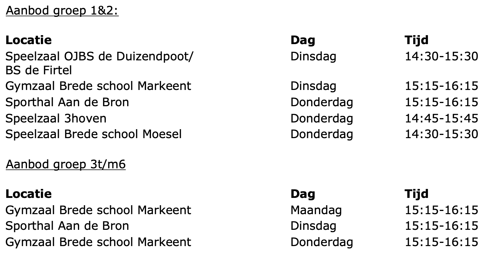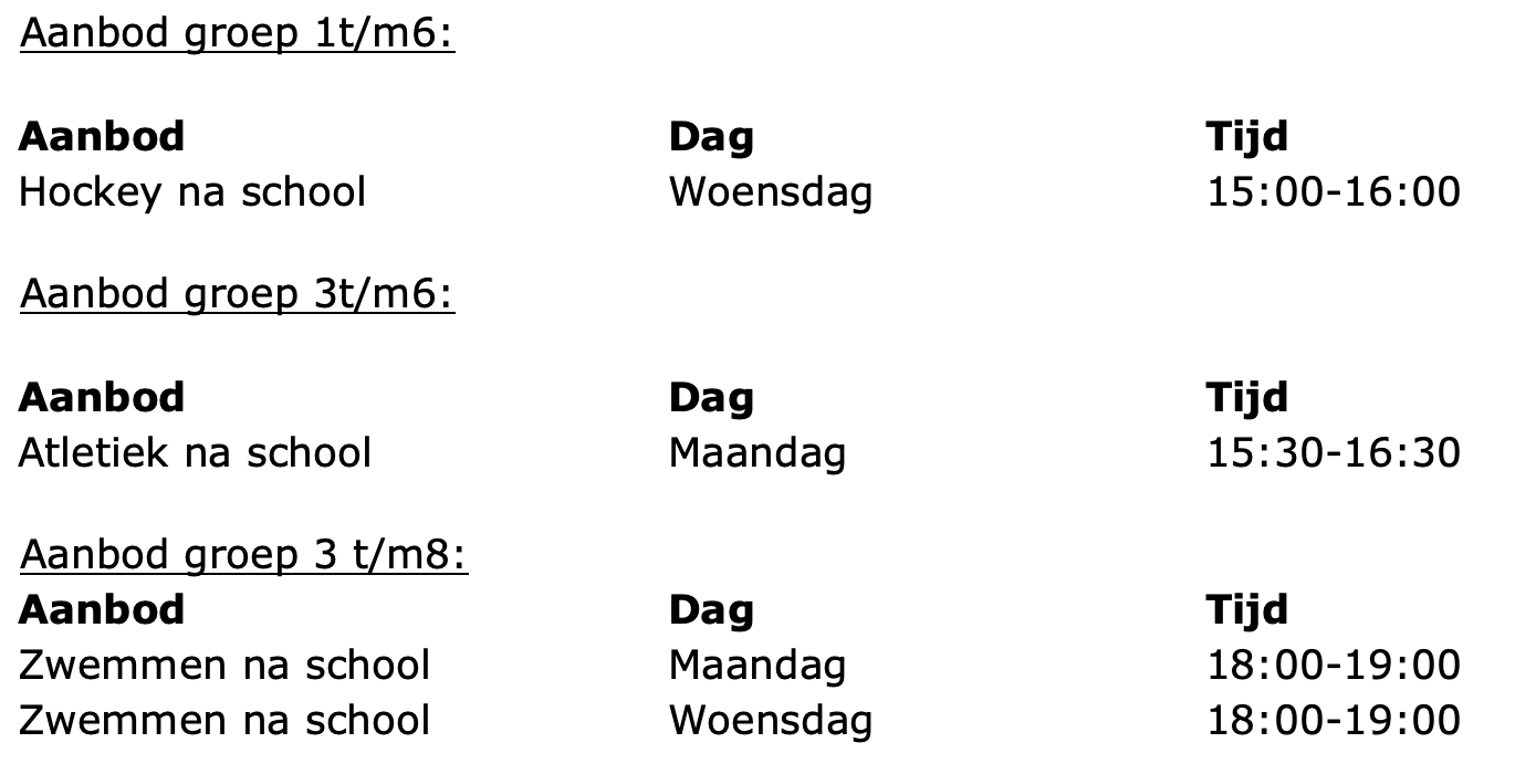 Wil jij kennismaken met hockey, atletiek of zwemmen? Ga dan voor meer info naar de website. Liever op een andere manier in beweging komen na schooltijd? Klik dan hier voor meer informatie.