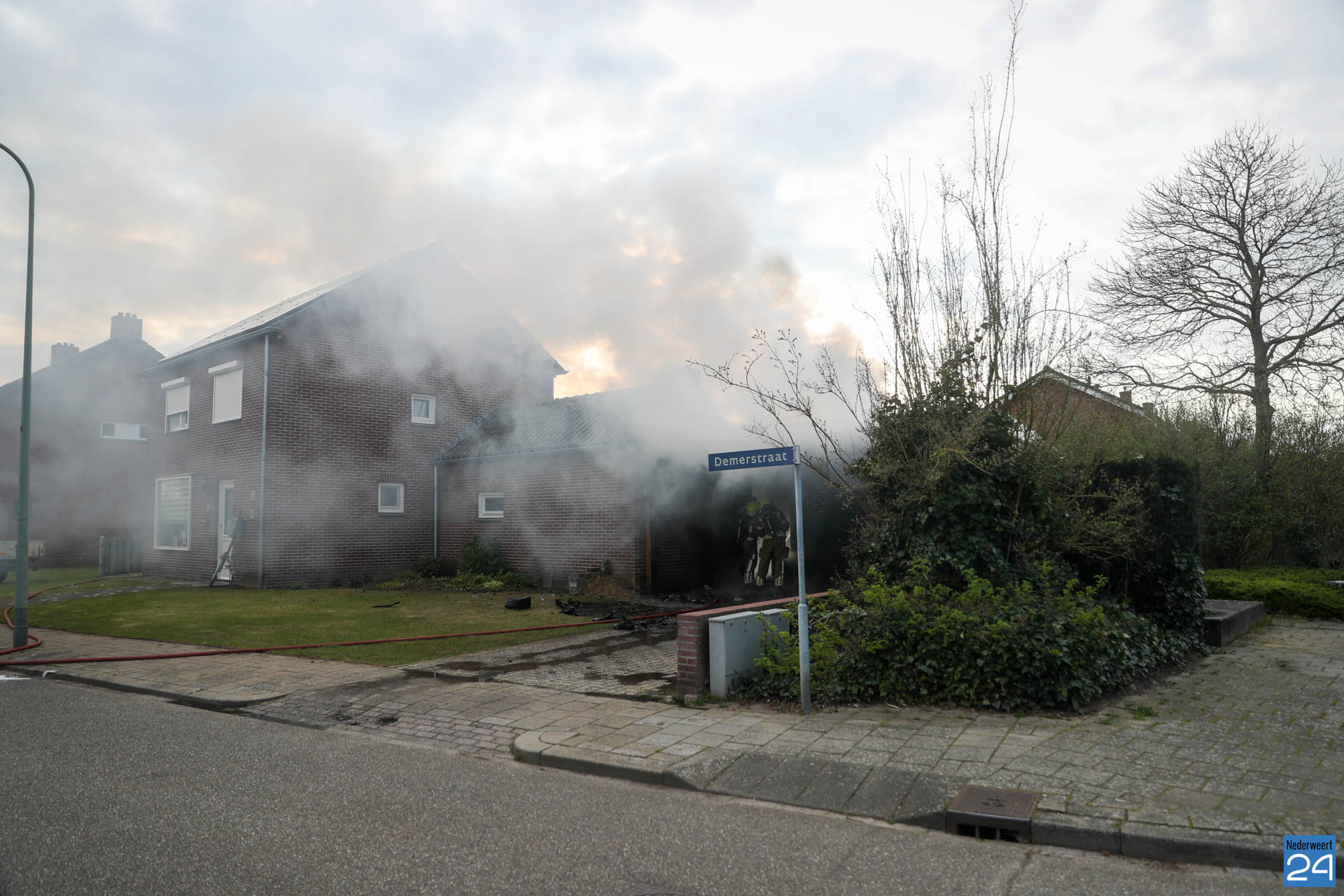 Zaterdagmiddag rond 17:30 uur is er brand uitgebroken in een garage bij een woning aan de Demerstraat in Stramproy.