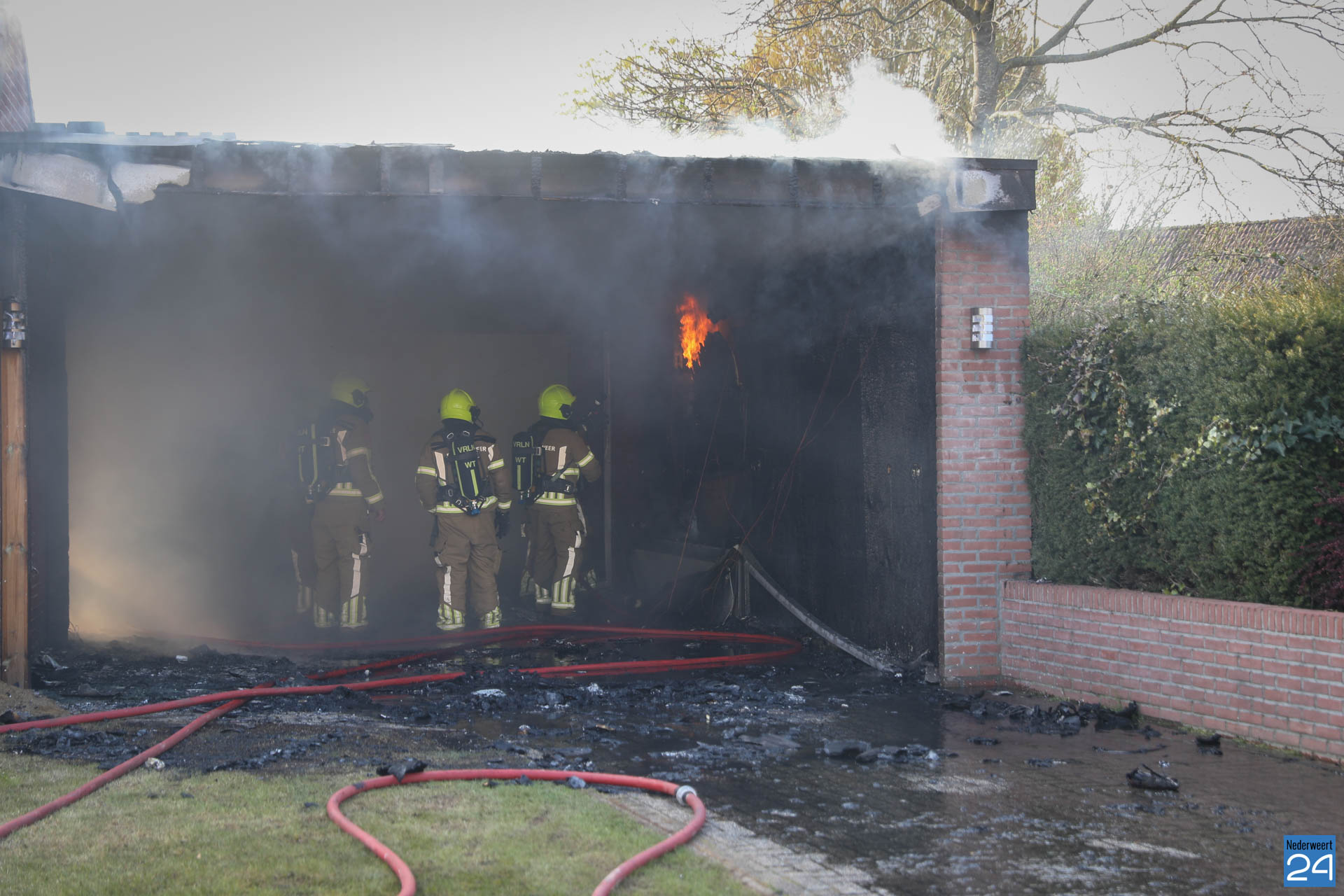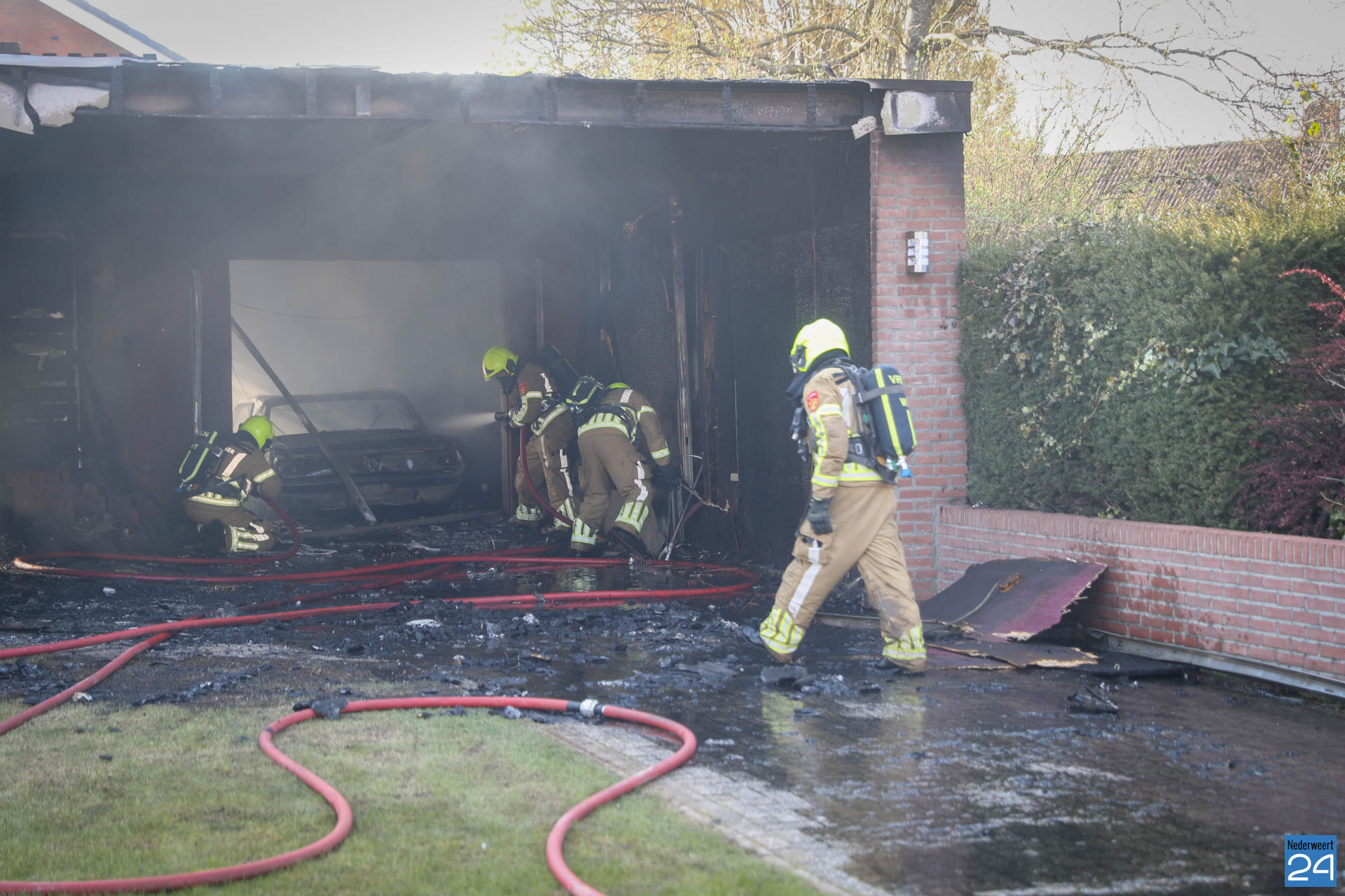 De brand was fel zette de garage volledig in vlammen. In de garage stond een oldtimers die volledig in vlammen is opgegaan.