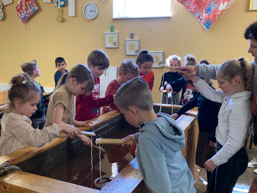 Afgelopen woensdag 19 april gingen de communicanten op bezoek bij kaarsenmakerij Inka in Weert. Daar werden ze opgewacht door eigenaresse Beppie die uitleg gaf over het maken van kaarsen. De communicanten mochten hierna zelf aan de slag door het lont onder te dompelen in vloeibaar kaarsvet. Iedereen deed enthousiast mee en maakte uiteindelijk zijn of haar eigen kaars. Hierdoor zijn de communicanten nog beter voorbereid op hun eerste communie die plaats zal vinden op zondag 21 mei om 11:00 uur in de St. Lambertuskerk in Nederweert.