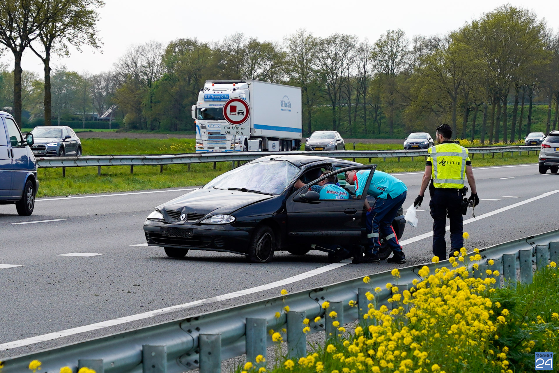 De vrouw is onderzocht in de ambulance maar hoefde niet mee naar het ziekenhuis. De auto raakte door het voorval ernstig beschadigd en is door een berger opgehaald. Het verkeer ondervond enige hinder door het ongeval. De weg is inmiddels weer geheel vrijgegeven.