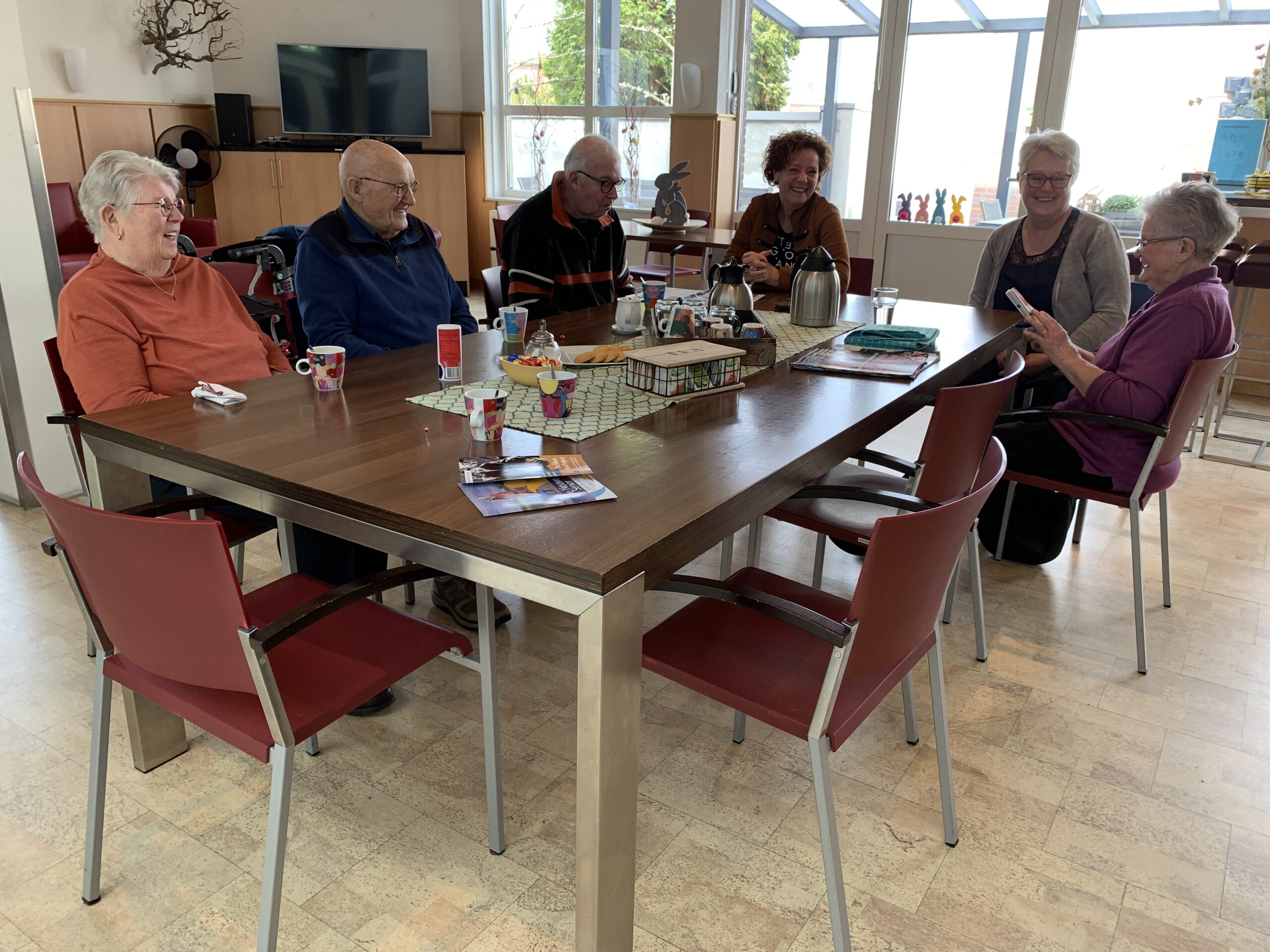Lies verloor niet lang geleden haar man. Zeker na ruim 65 jaar samenzijn, is dat niet gemakkelijk: “Ik ben geen ‘nieser’ zoals ze hier zeggen, ik moet verder. Het is fijn dat ik hier andere mensen tref en het nieuws uit het dorp hoor. Wie wil kan meedoen aan allerlei spelletjes, hersengymnastiek noemen ze dat. De ene keer doe ik mee, de andere keer handwerk ik en geniet ik gewoon van de sfeer.”