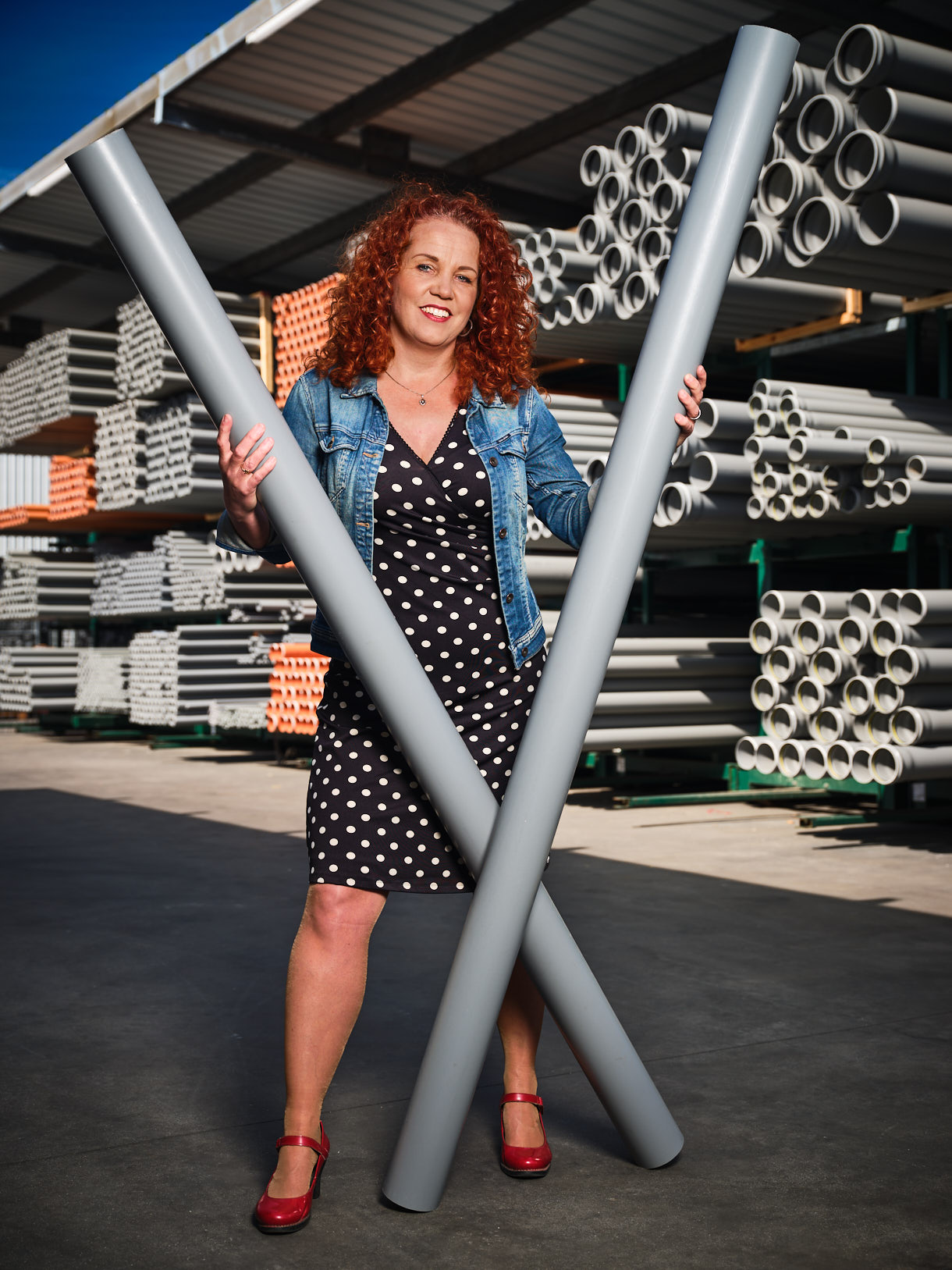 Het was voor Susanne (49) niet vanzelfsprekend om bij Saniceve te gaan werken, laat staan het bedrijf over te nemen. Toch verliep het zo. Met een onderwijsbevoegdheid economie op zak en bijna vier jaren praktijkervaring in het onderwijs, leek het voor vader Frans voor de hand liggend dat dochterlief op kantoor zou komen als administratief medewerkster. Maar daar lag haar voorkeur niet. Toen haar vader voorstelde om een sanitairafdeling op te zetten als aanvulling op de groothandel, was Susanne’s interesse gewekt. Zij doorliep eerst alle afdelingen van het bedrijf, alvorens zij op de afdeling verkoop begon. Daar maakte ze kennis met de beginselen van de sanitairafdeling. Vervolgens ging ze de baan op, in de buitendienst. Algauw ontstond bij haar de wens om een showroom op te zetten voor sanitair. Daar zouden installateurs en klanten zich kunnen laten inspireren, waarna de installateur alle materialen bij hen zou kunnen kopen. Een win-winsituatie.