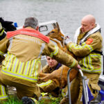 Het ree kon niet meer zelf uit het water komen. De brandweer werd opgeroepen en ging met een bootje te water om het dier te redden. Het dier was wat in paniek en “zwom” van de ene kant van het kanaal naar de andere kant.