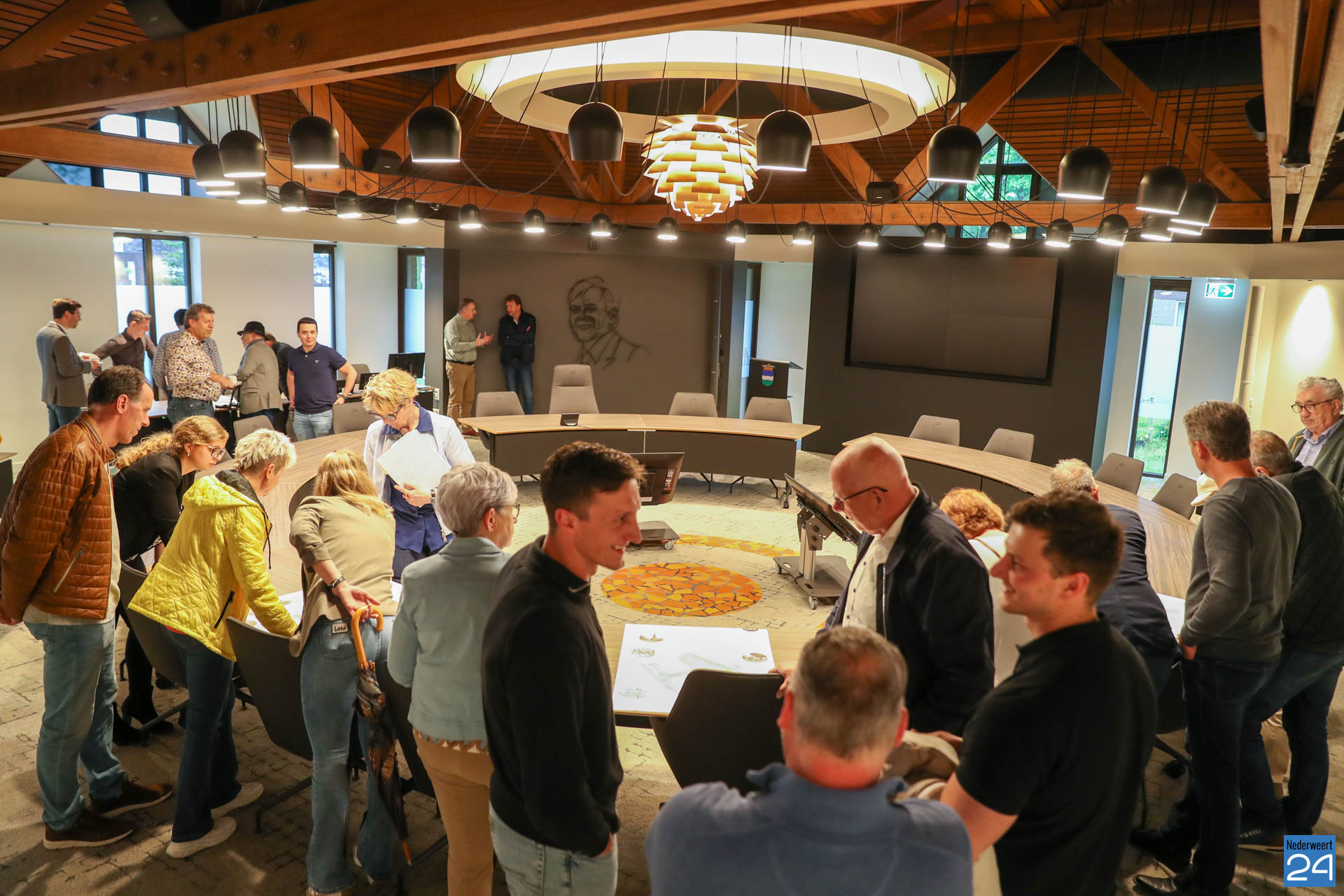 Veel ondernemers, bewoners, raadsleden en vertegenwoordigers van verschillende belangengroepen bezochten op dinsdag 9 mei de open inloop over de ontwikkelingen rond het Lambertushof in het gemeentehuis van Nederweert. Ruim 70 mensen waren aanwezig. Ze bekeken de schetsontwerpen en kregen uitleg van de leden van de projectgroep over de gemaakte keuzes.