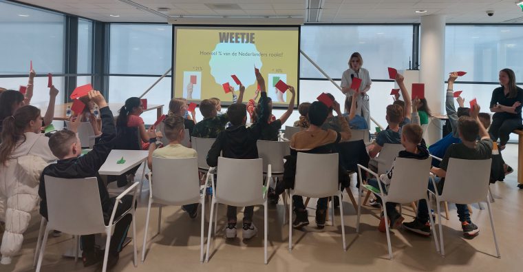 Op 11 mei ontving de longarts leerlingen van basisschool de Schrank uit Ospel en basisschool Aan de Bron uit Weert om hen voor te lichten over de gezondheidsrisico’s van tabak en aanverwante verleidingen zoals vapen, het gebruik van elektronische sigaretten. “Erg populair onder de jeugd, maar veel minder onschuldig dan het lijkt”, aldus de longarts. De leerlingen luisterden geboeid, deden enthousiast mee met de quiz en stelden veel vragen.