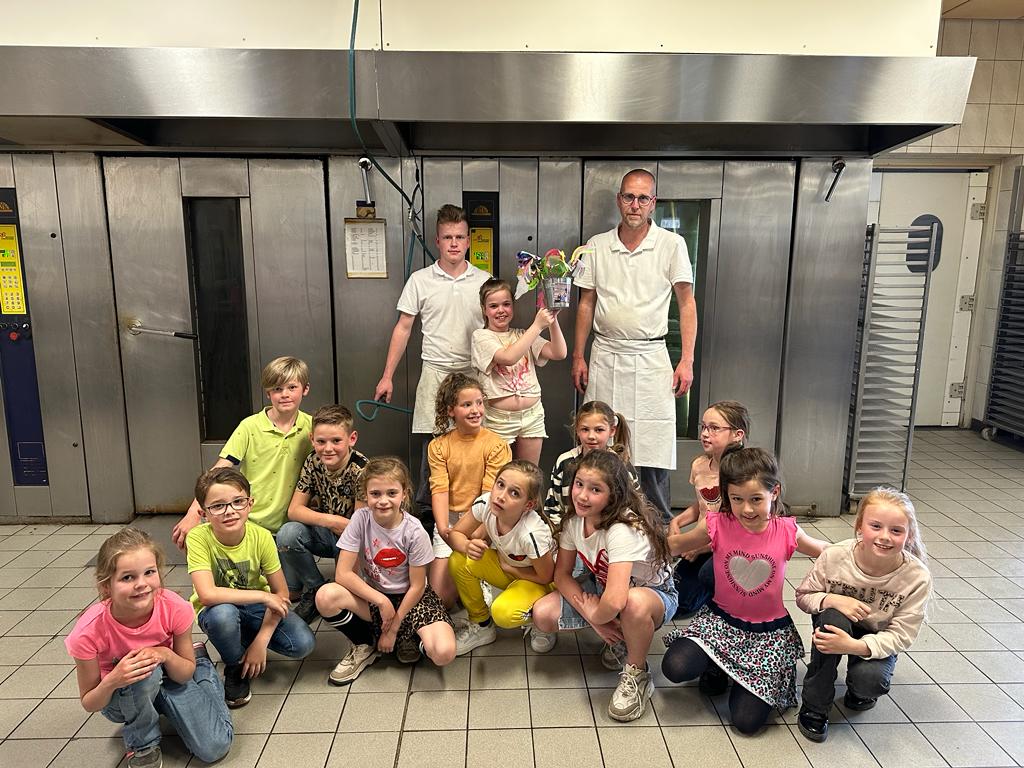 Gisteren hebben de communicanten van basisschool De Schrank uit Ospel een rondleiding gekregen bij bakkerij Kessels te Ospeldijk. Ze hebben hier zelf ook broodjes en vlaai mogen bakken.