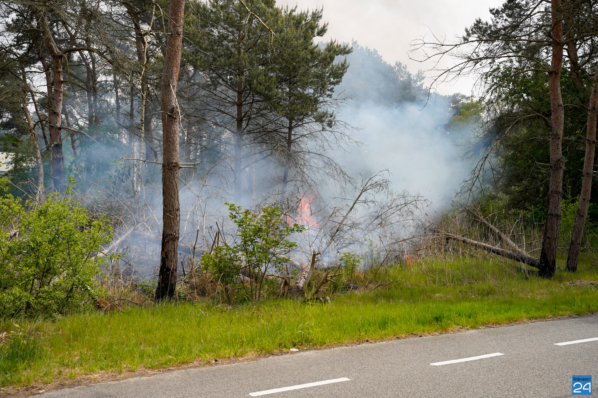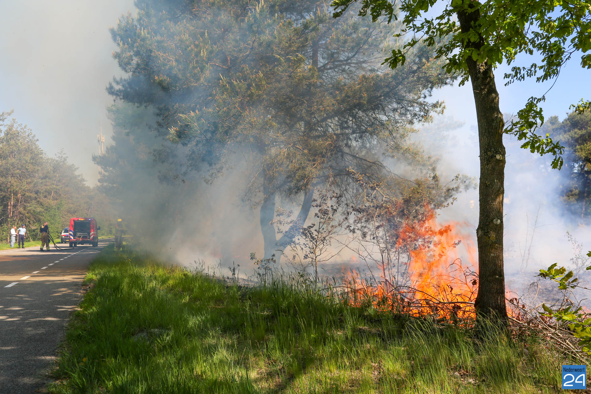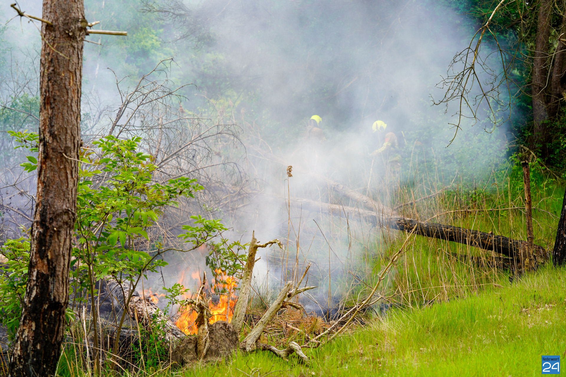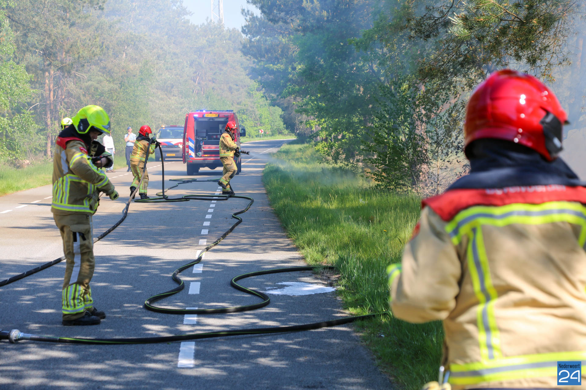Een voorbijganger reed de locatie van de brand voorbij en bedacht zich dat hij iets had gezien wat niet klopte. Hij reed terug en zag al snel dat er een klein brandje was ontstaan. Hij belde vervolgens met 112. De brandweer van Nederweert werd in eerste instantie met een blusvoertuig opgeroepen. Ondertussen breidde het vuur zich snel uit. Een waterwagen van Weert werd vervolgens aangestuurd om het team uit Nederweert te ondersteunen.