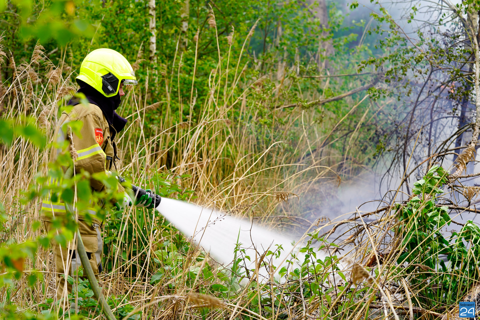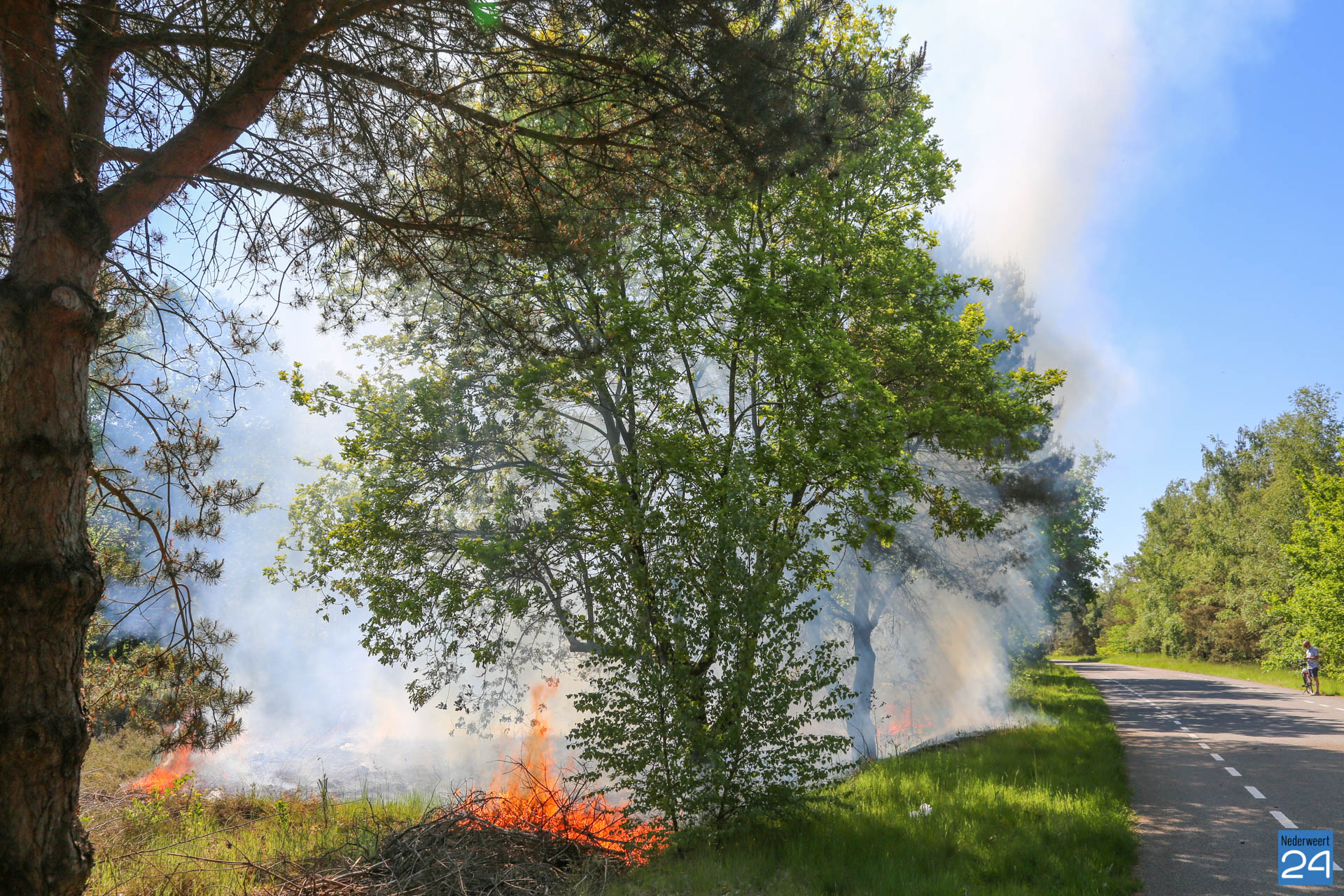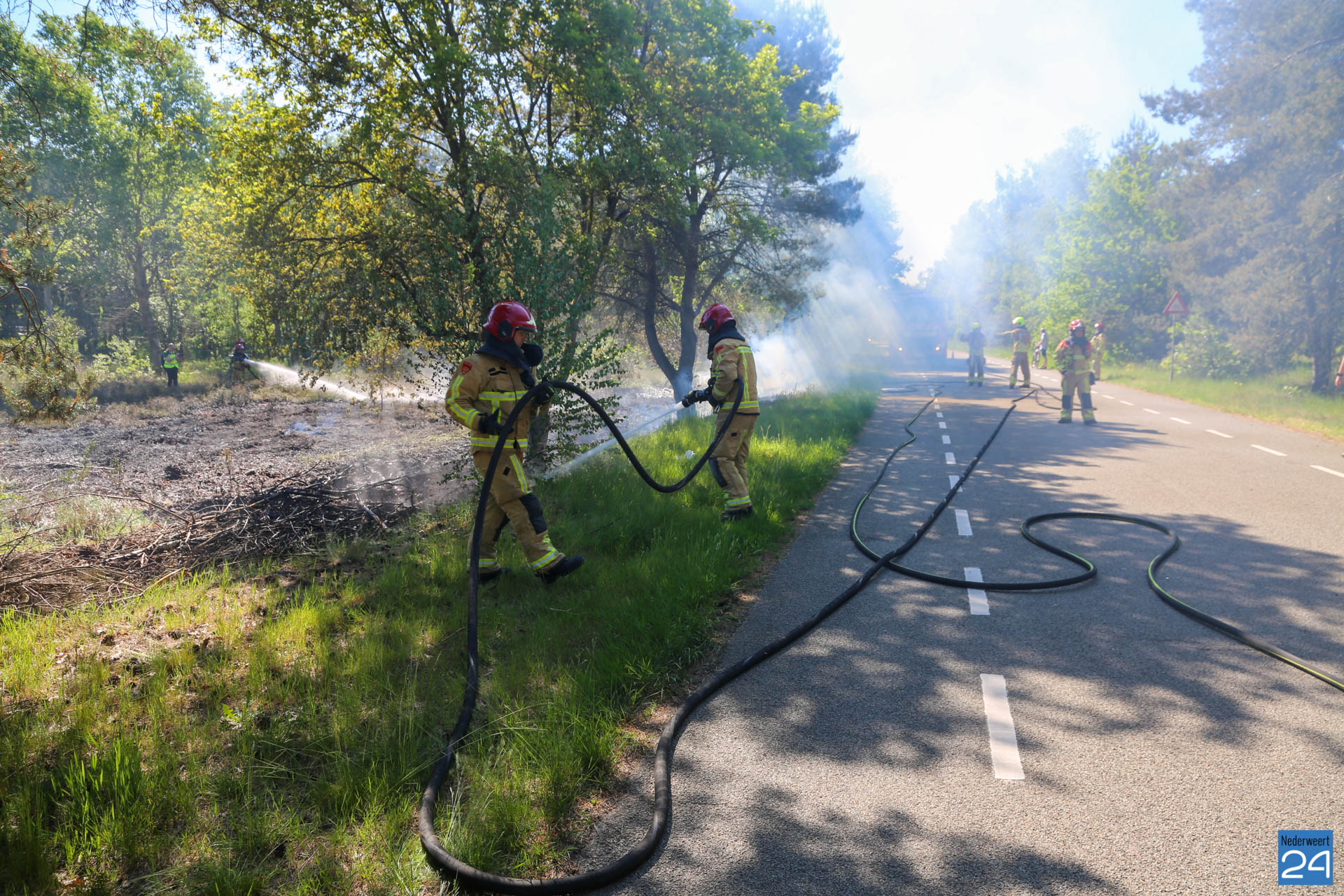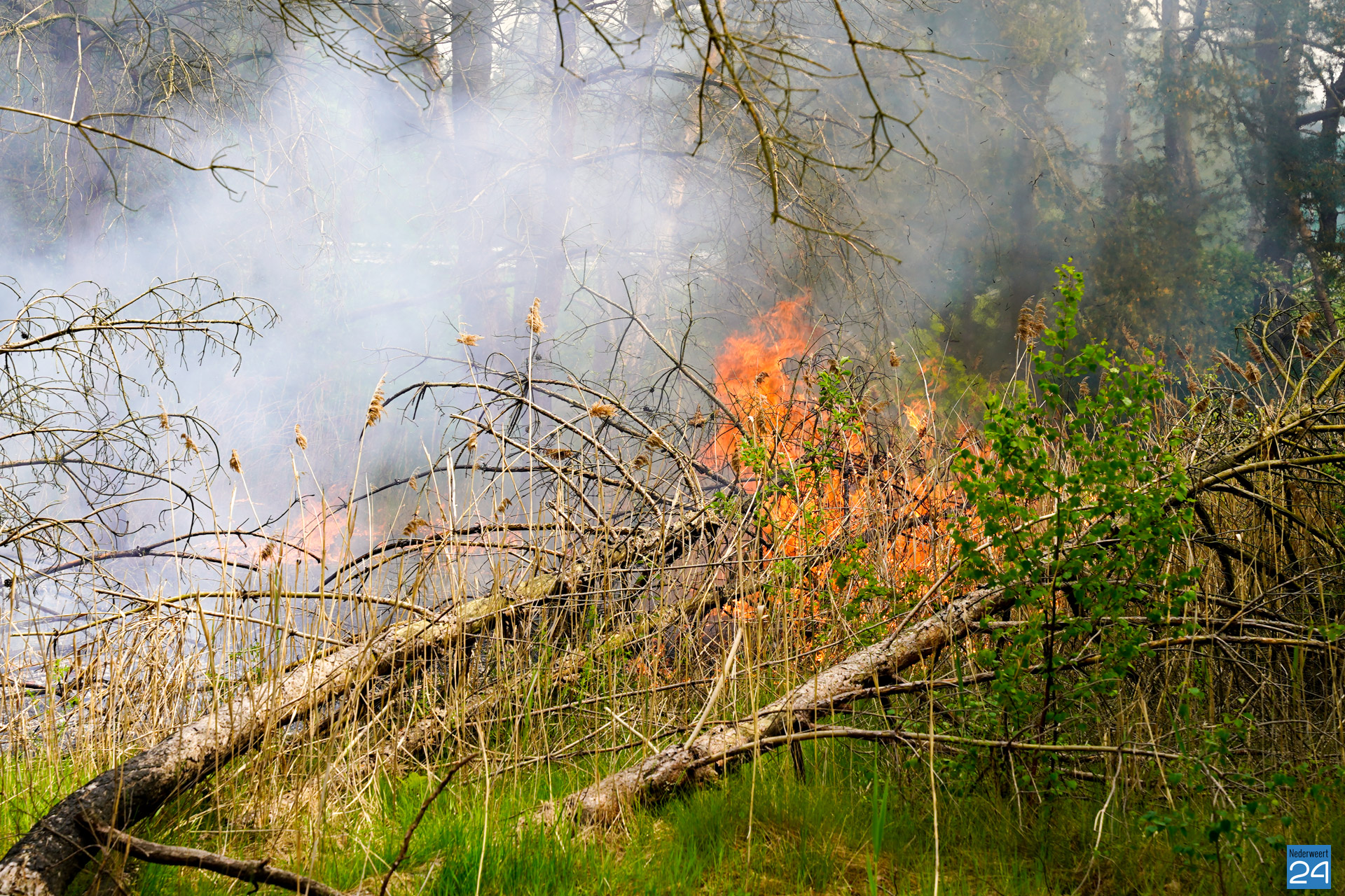Een voorbijganger reed de locatie van de brand voorbij en bedacht zich dat hij iets had gezien wat niet klopte. Hij reed terug en zag al snel dat er een klein brandje was ontstaan. Hij belde vervolgens met 112. De brandweer van Nederweert werd in eerste instantie met een blusvoertuig opgeroepen. Ondertussen breidde het vuur zich snel uit. Een waterwagen van Weert werd vervolgens aangestuurd om het team uit Nederweert te ondersteunen.
