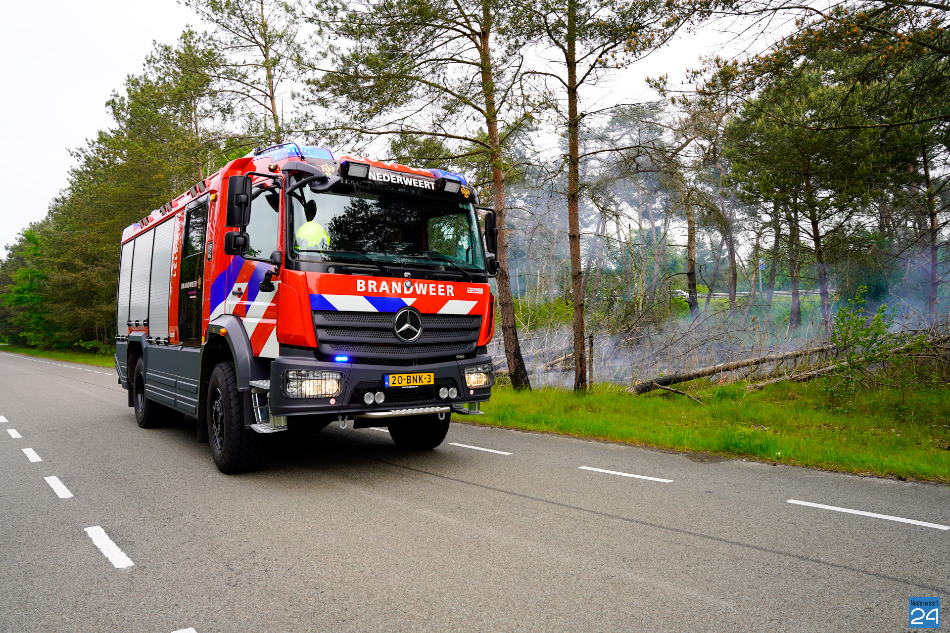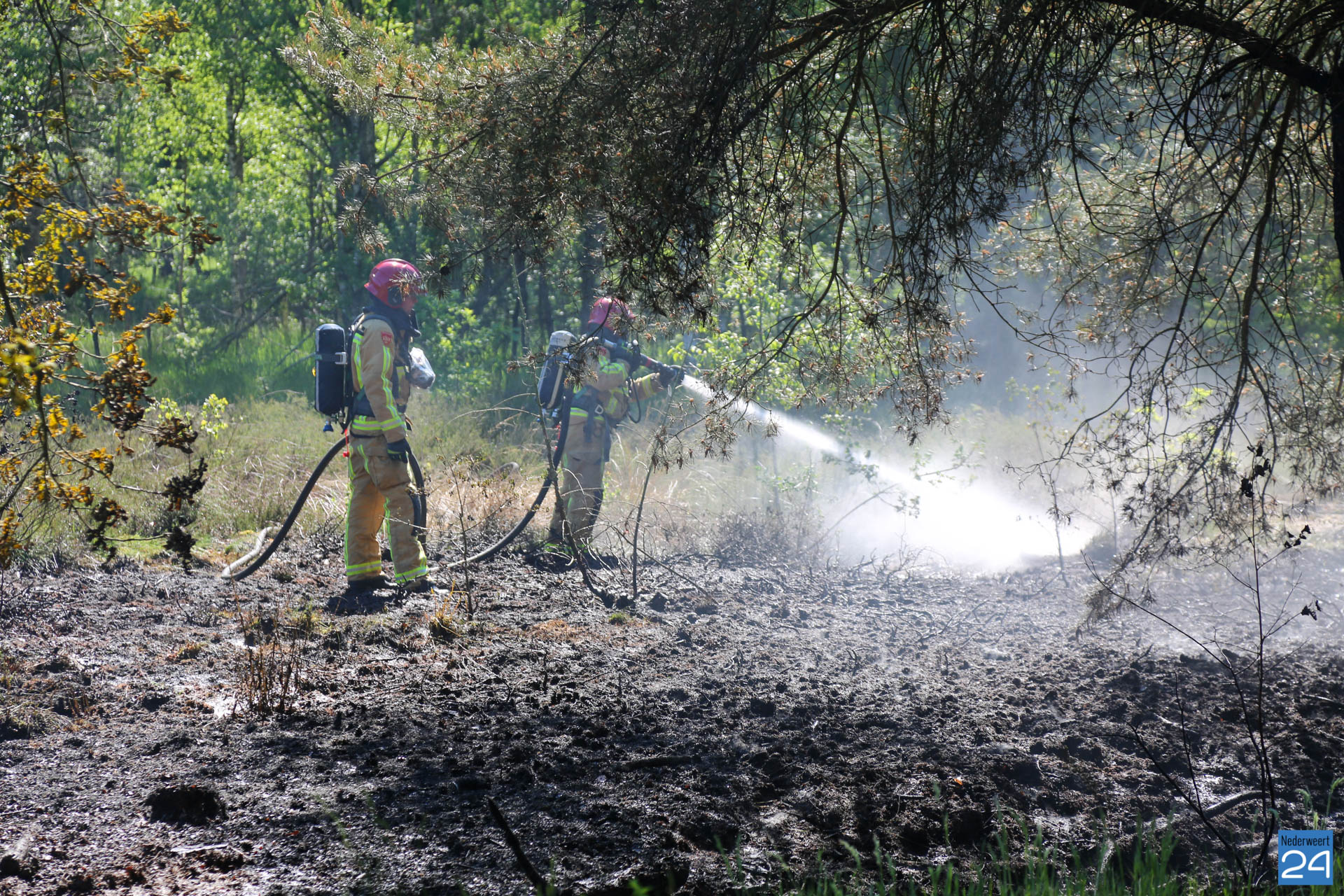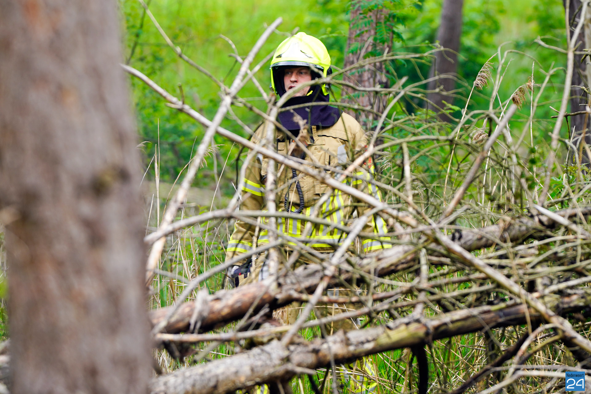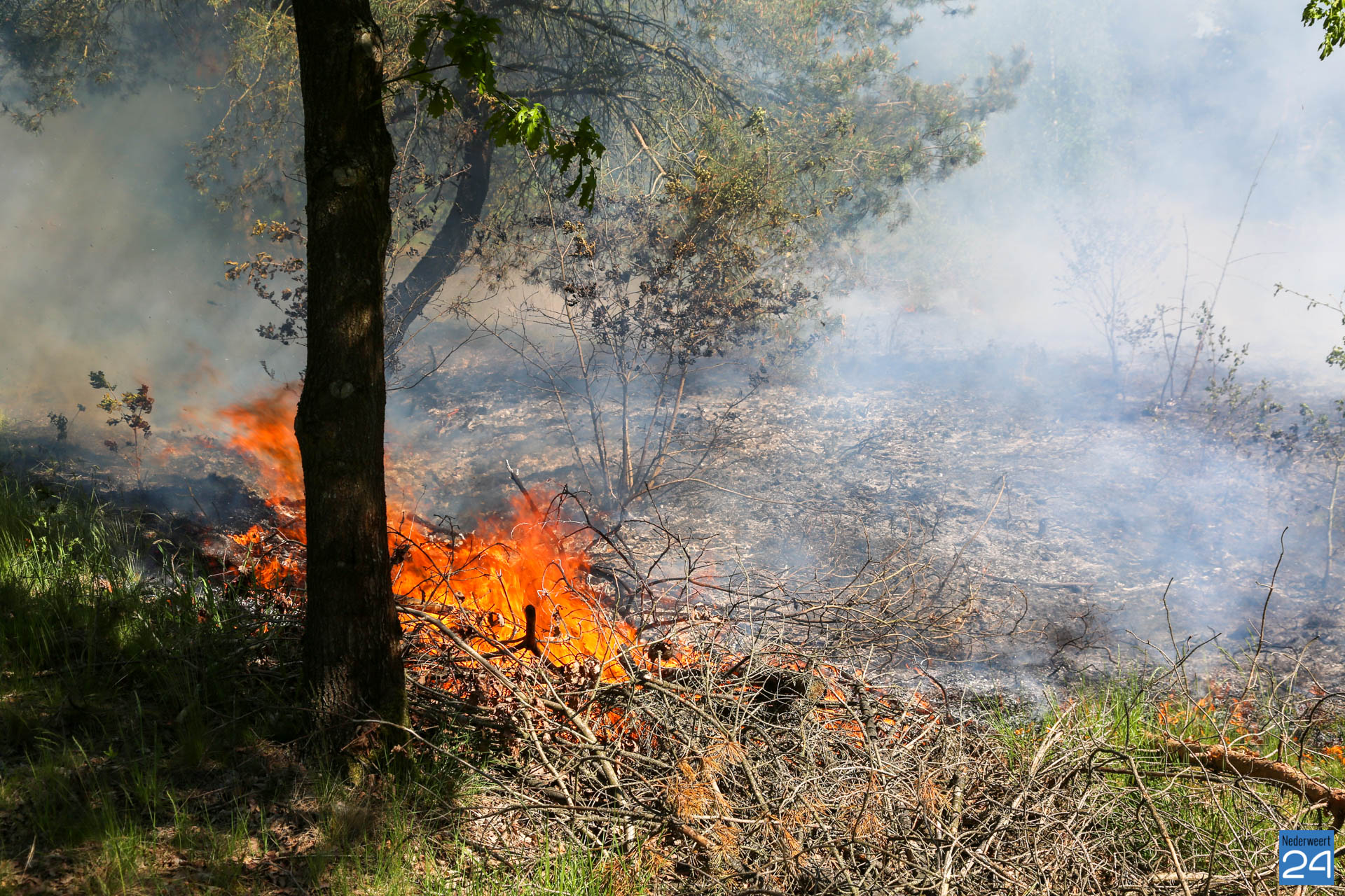 Een voorbijganger reed de locatie van de brand voorbij en bedacht zich dat hij iets had gezien wat niet klopte. Hij reed terug en zag al snel dat er een klein brandje was ontstaan. Hij belde vervolgens met 112. De brandweer van Nederweert werd in eerste instantie met een blusvoertuig opgeroepen. Ondertussen breidde het vuur zich snel uit. Een waterwagen van Weert werd vervolgens aangestuurd om het team uit Nederweert te ondersteunen.