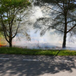 De berm tussen de Eindhovenseweg en de snelweg A2 heeft maandag aan het begin van de middag vlam gevat.