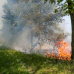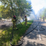 De brandweer had het vuur snel onder controle. Het verkeer op de nabijgelegen snelweg had nauwelijks overlast door de brand. Hoe het vuur heeft kunnen ontstaan is niet bekend.