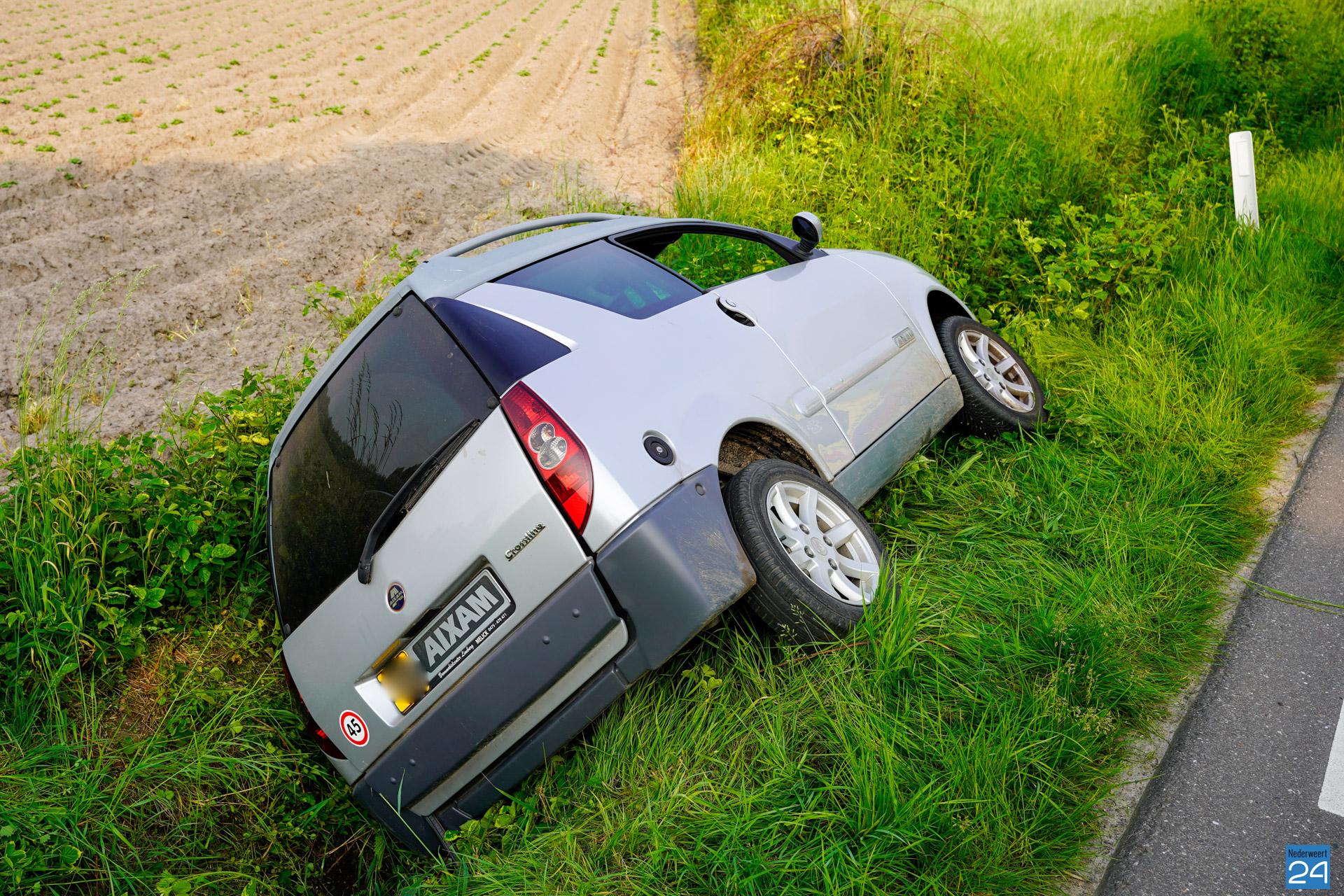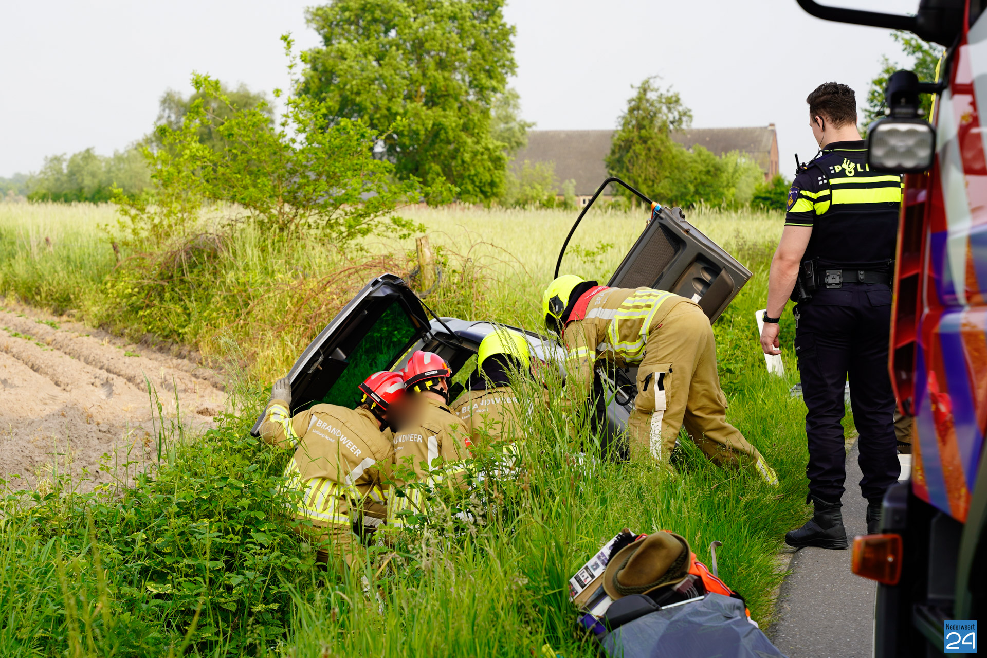 De man verloor door onbekende oorzaak de macht over het stuur kwijt en belandde met het gevaarte in de nabijgelegen sloot. De brandweer heeft de man via de achterklep uit het voertuig gehaald. Hij is vervolgens door toegesnelde ambulancemedewerkers nagekeken op verwondingen.