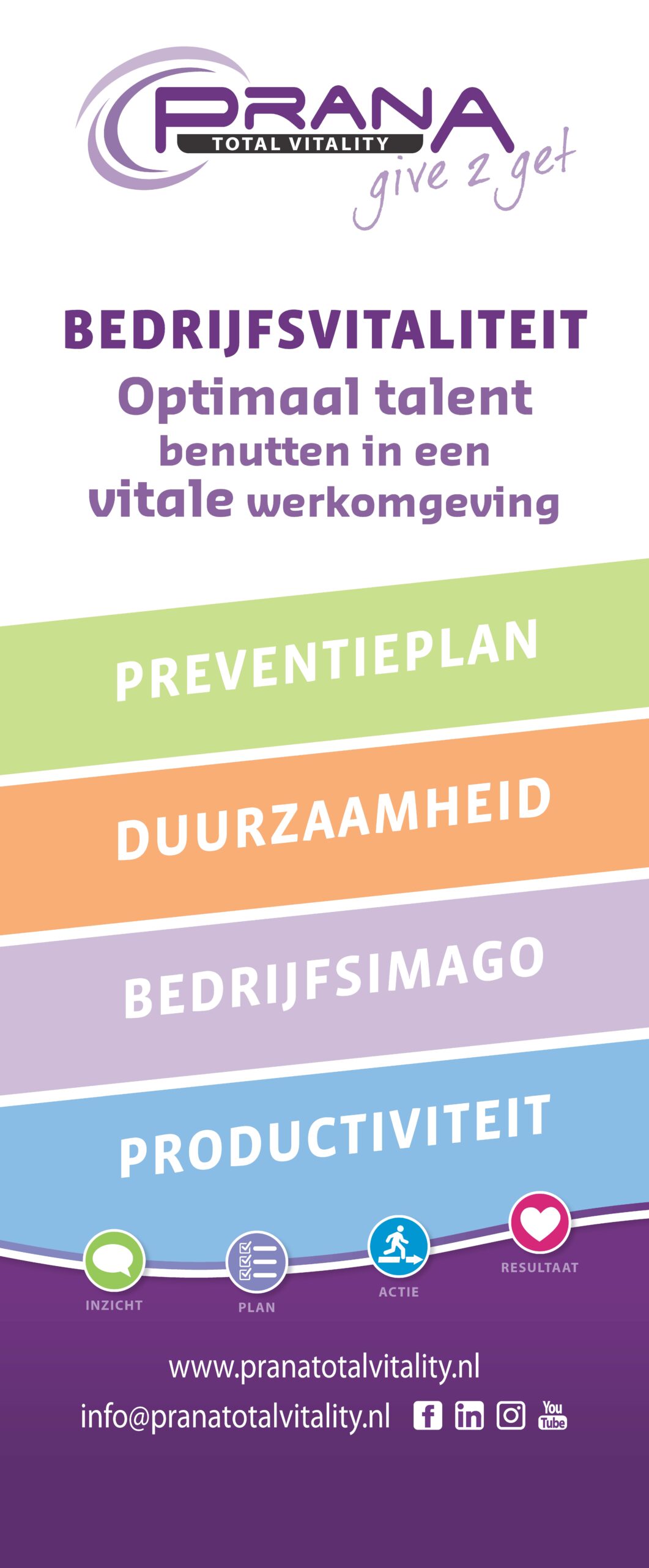 Bedrijven kunnen hun werknemers de mogelijkheid bieden om als onderdeel van de arbeidsvoorwaarden aan de slag te gaan met een bedrijfsvitaliteitsprogramma. Prana Total Vitality en Fysio Active Nederweert helpen organisaties om een optimale vitaliteit te bereiken en te behouden. Dit kan op zijn beurt weer bijdragen aan een betere productiviteit en een lager verzuim.