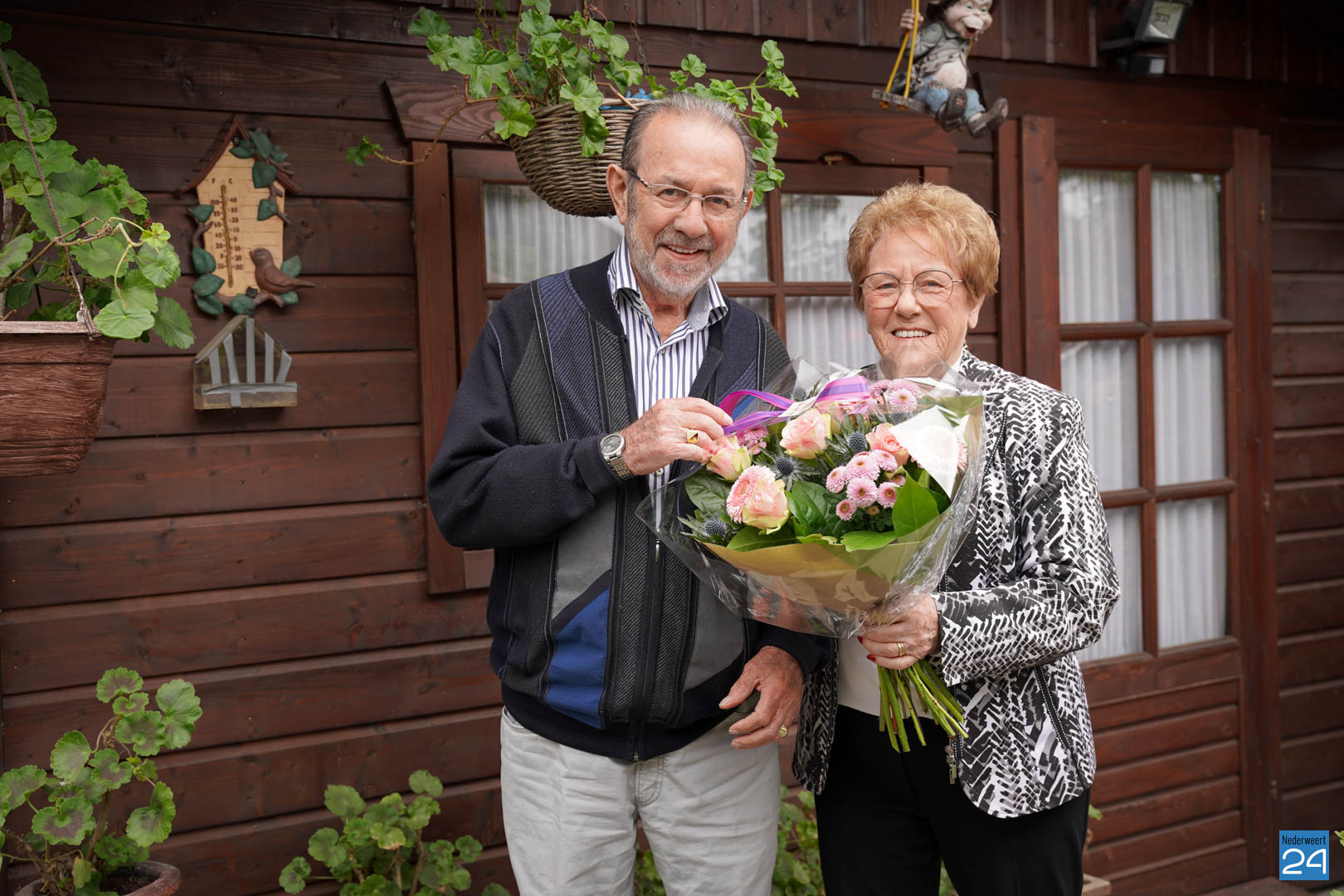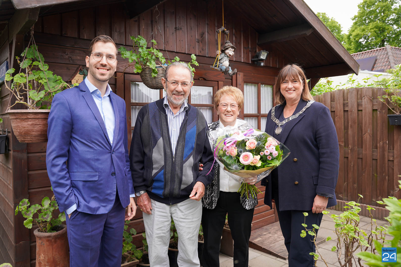 Woensdag 24 mei: een diamanten dag voor Jo en Rina Douven-Kessels uit Nederweert. Het was toen precies zestig jaar geleden dat ze samen in het huwelijksbootje stapten. Burgemeester Op de Laak en wethouder Franssen kwamen vandaag op bezoek om ze met dit mooie jubileum te feliciteren.