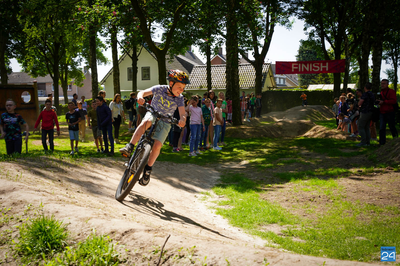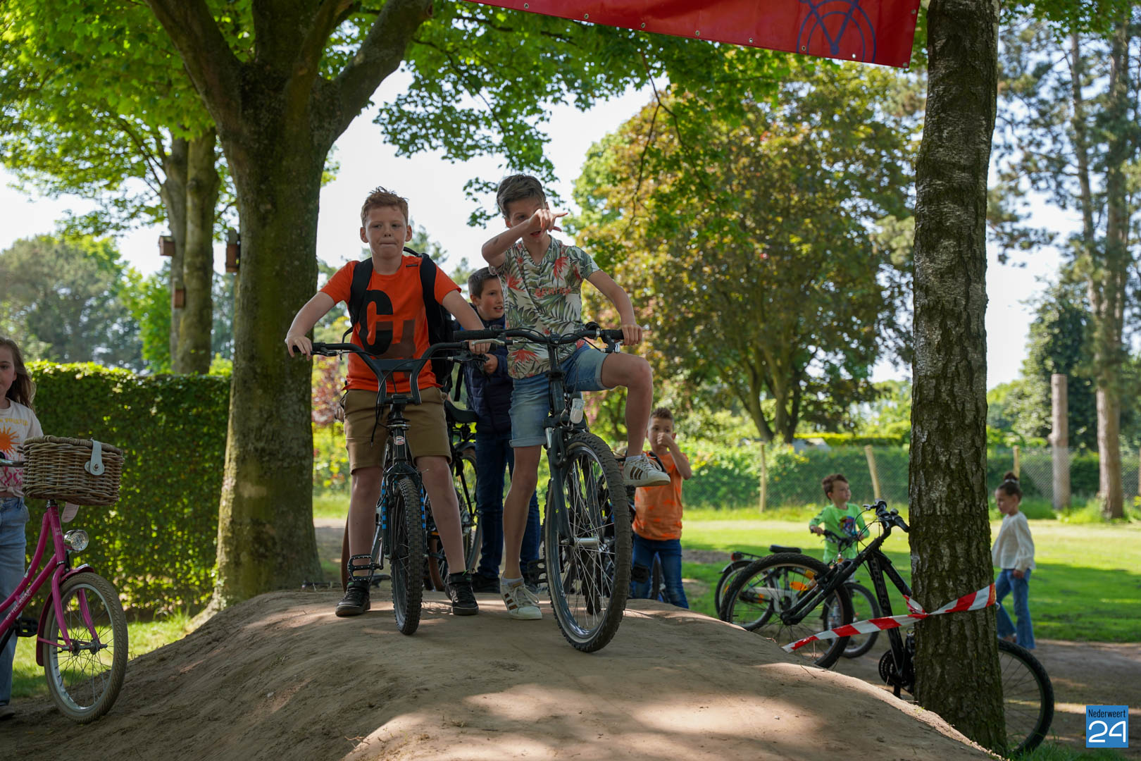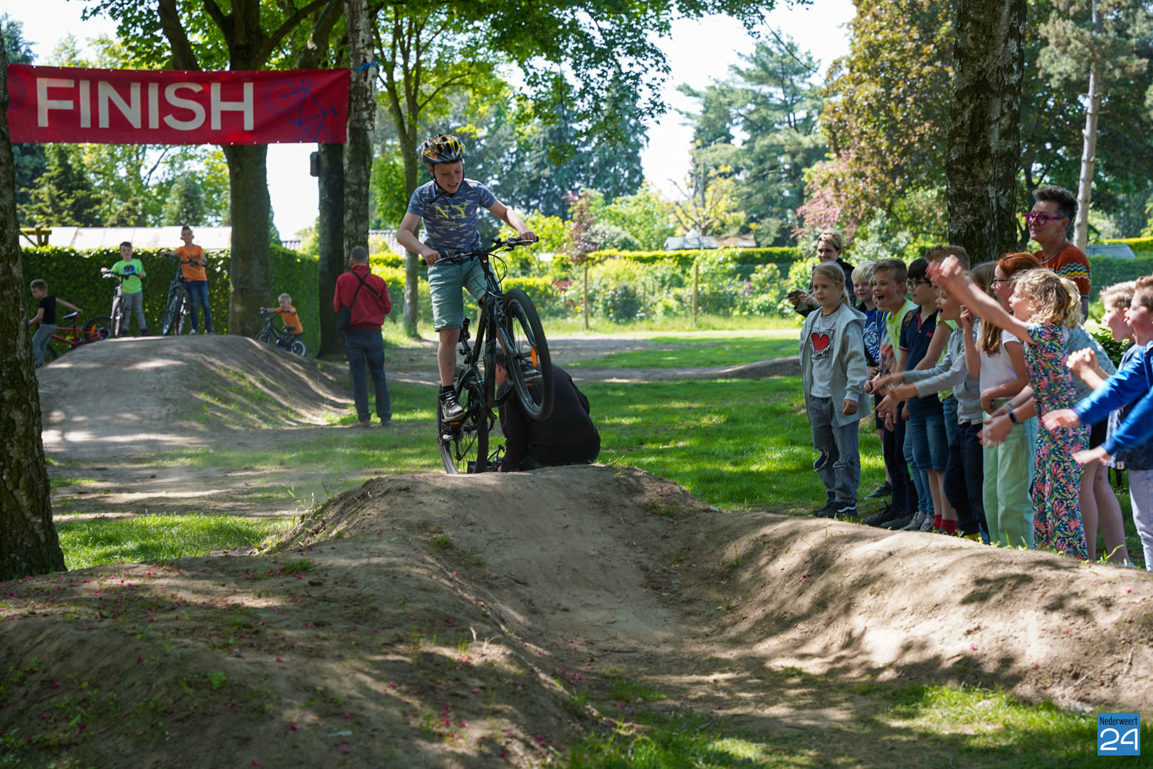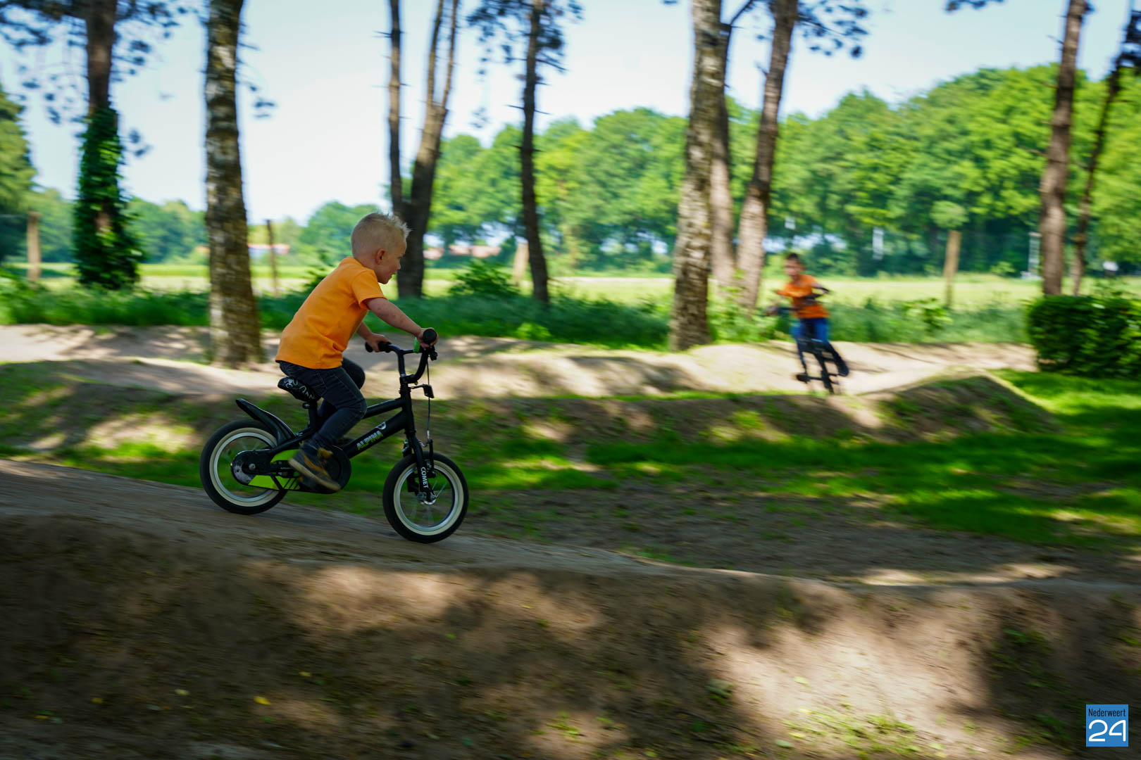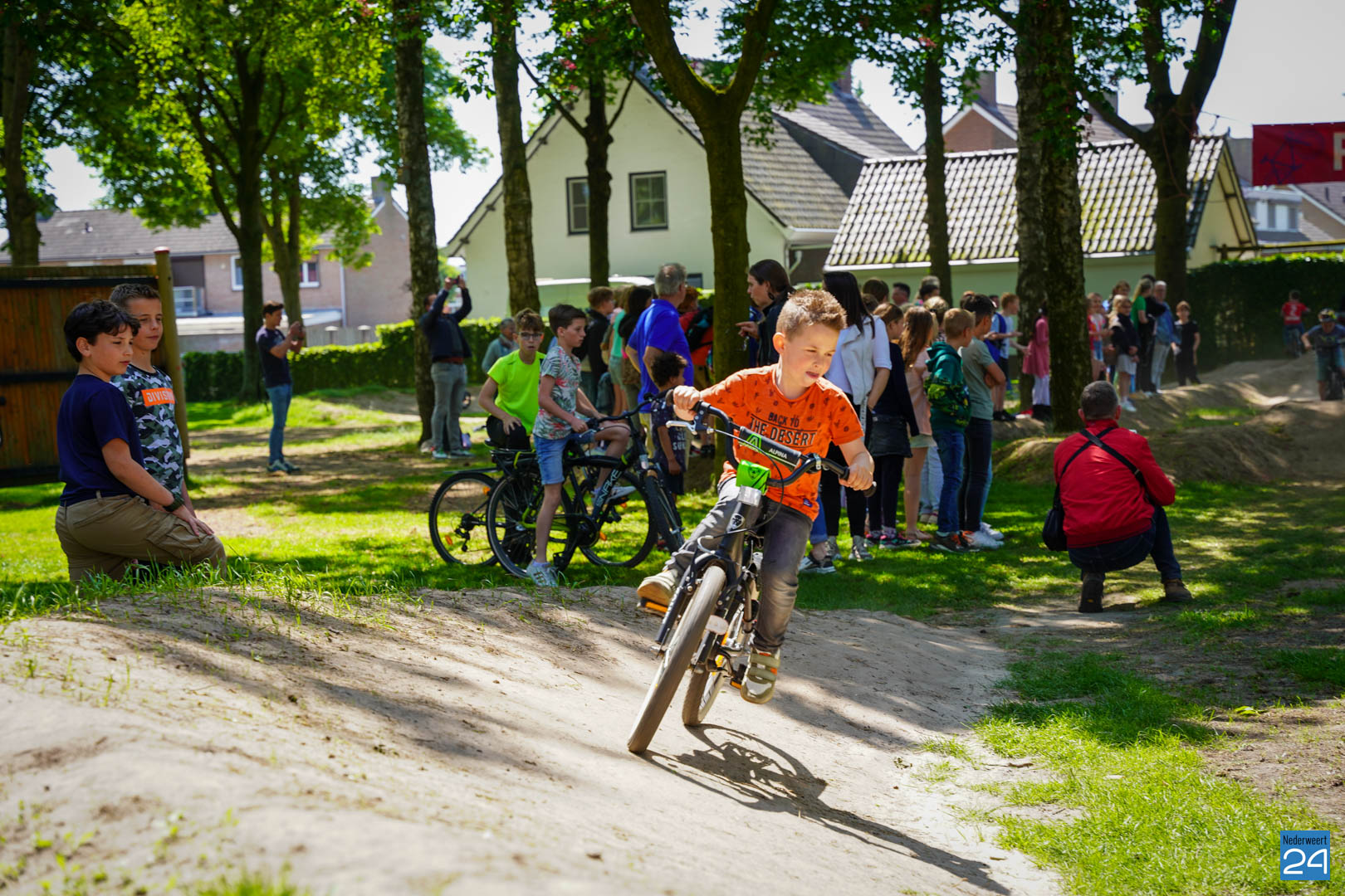 Het was feest vrijdagmiddag op het speelveldje tegenover basisschool De Schrank in Ospel. Daar werd het splinternieuwe fiets-crossbaantje geopend.
