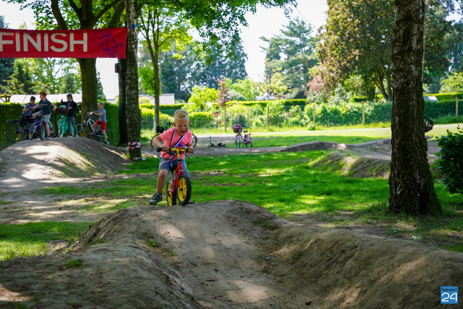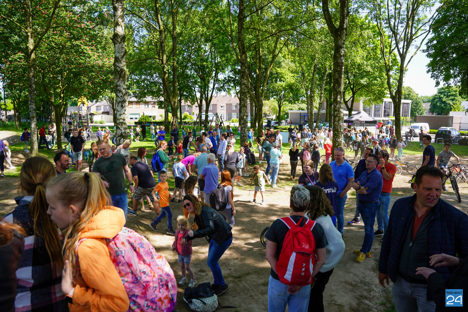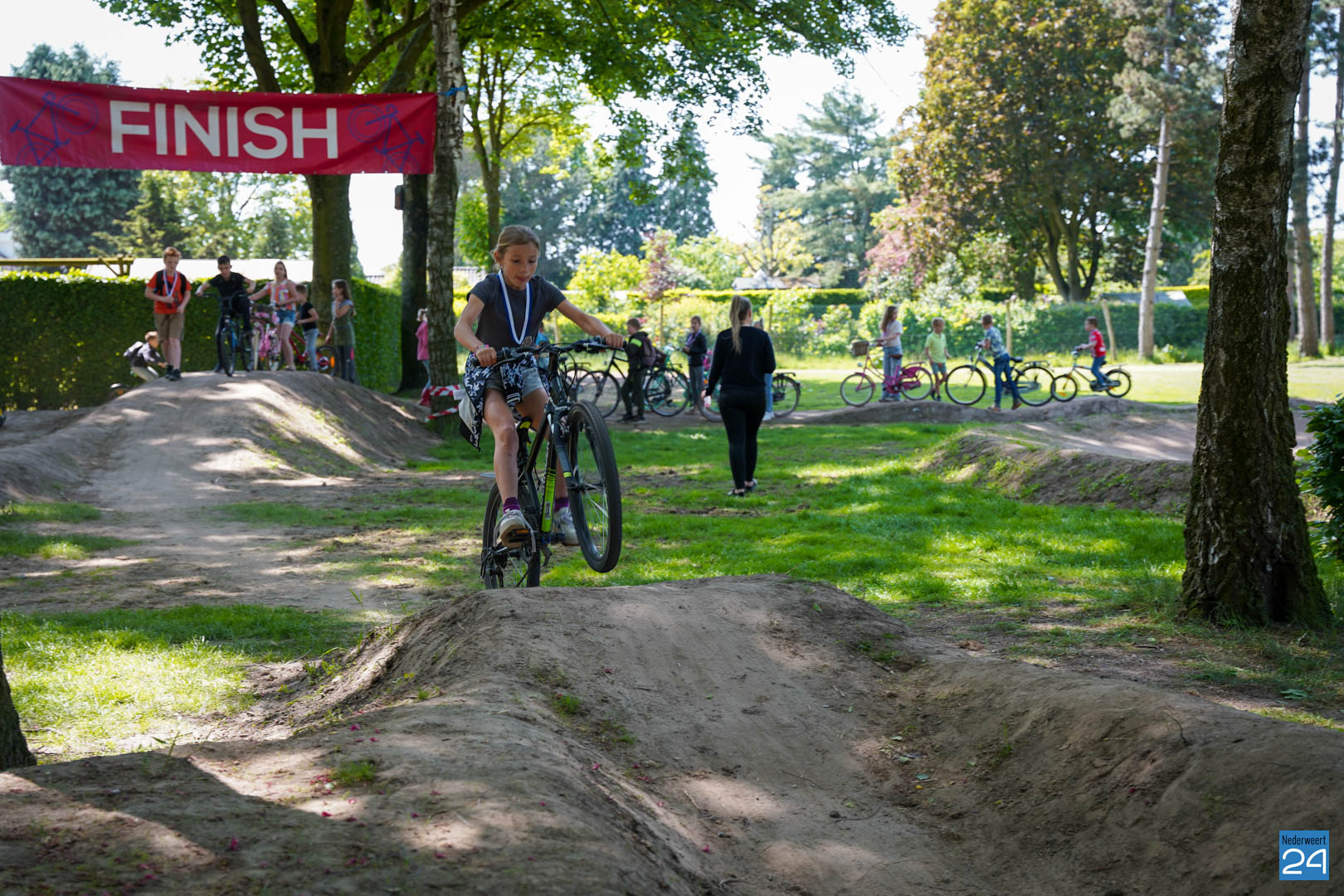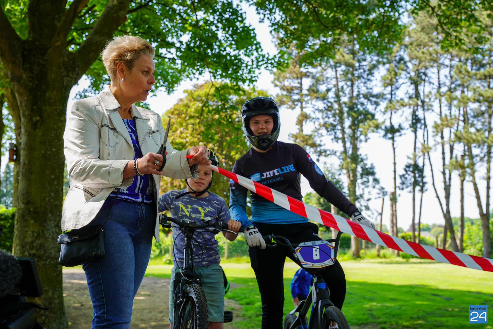 Het was feest vrijdagmiddag op het speelveldje tegenover basisschool De Schrank in Ospel. Daar werd het splinternieuwe fiets-crossbaantje geopend.