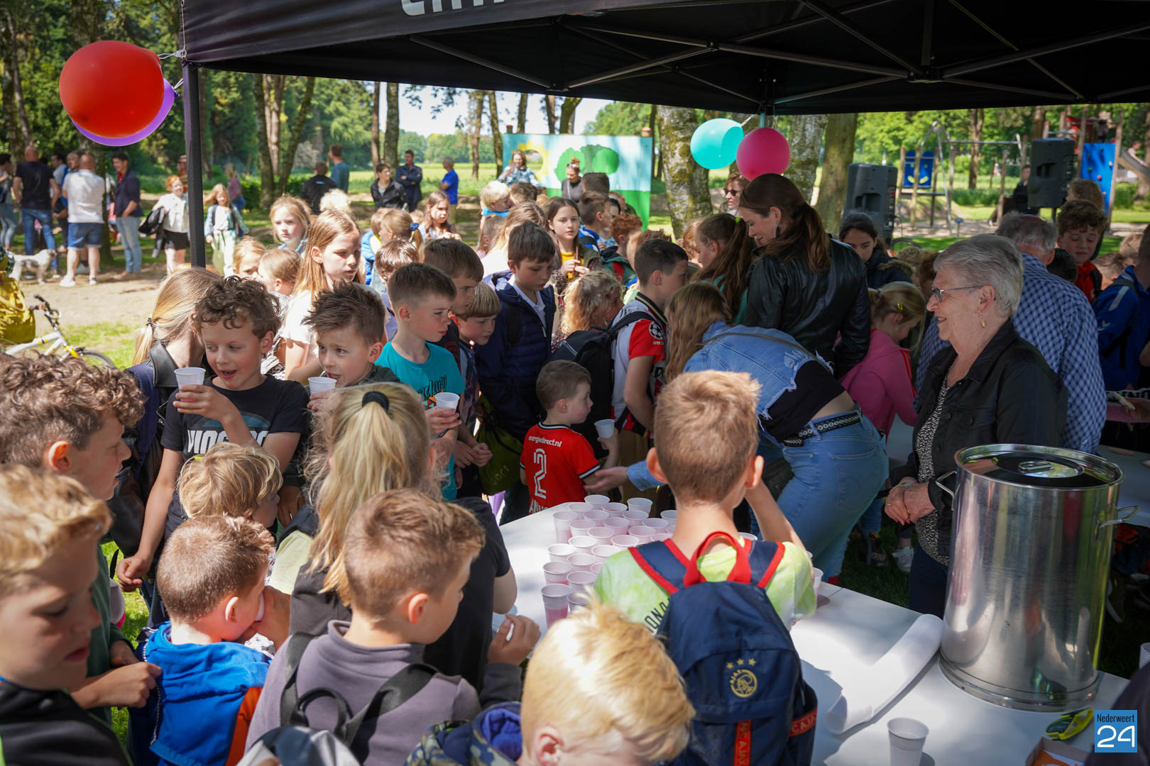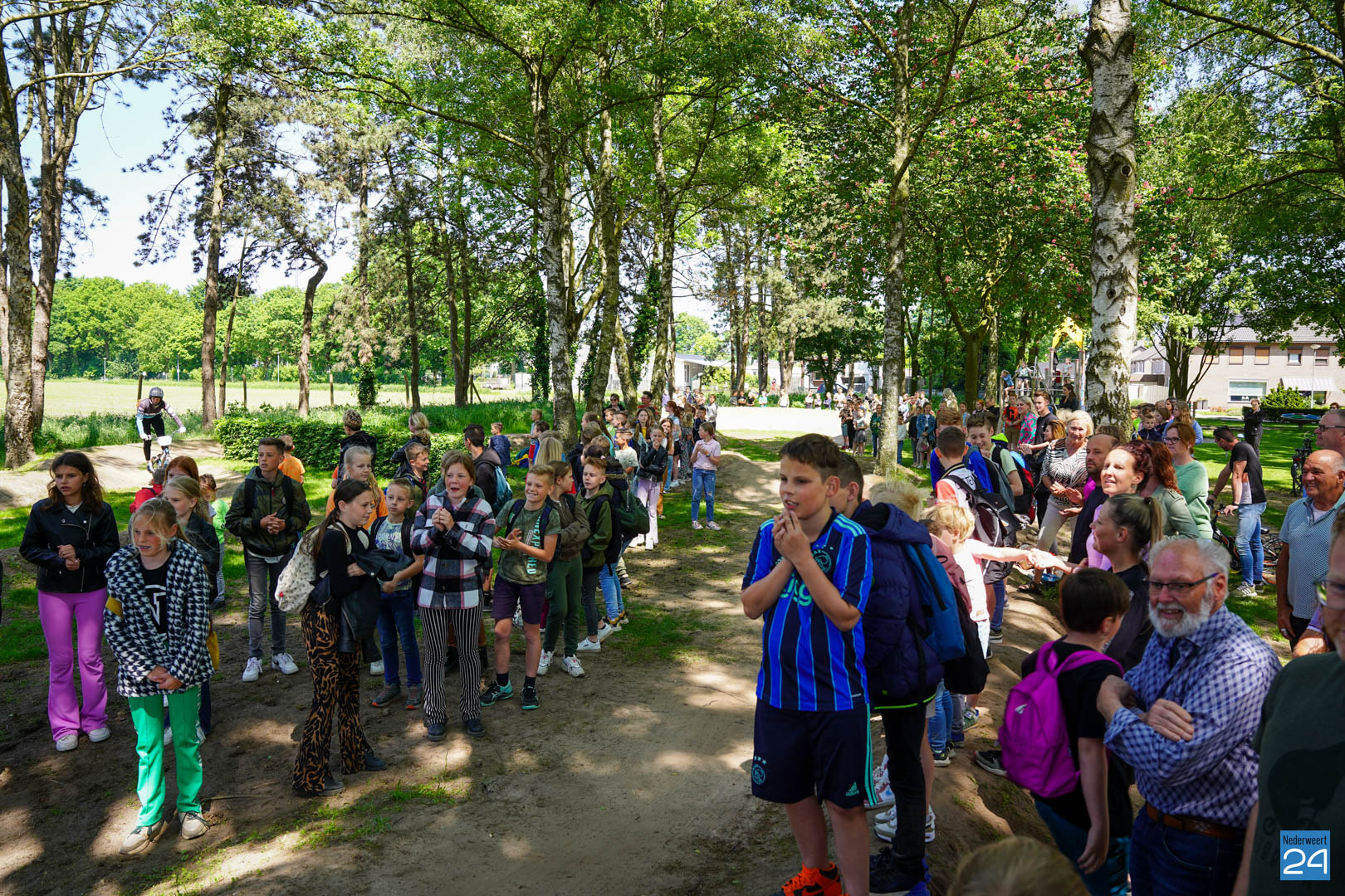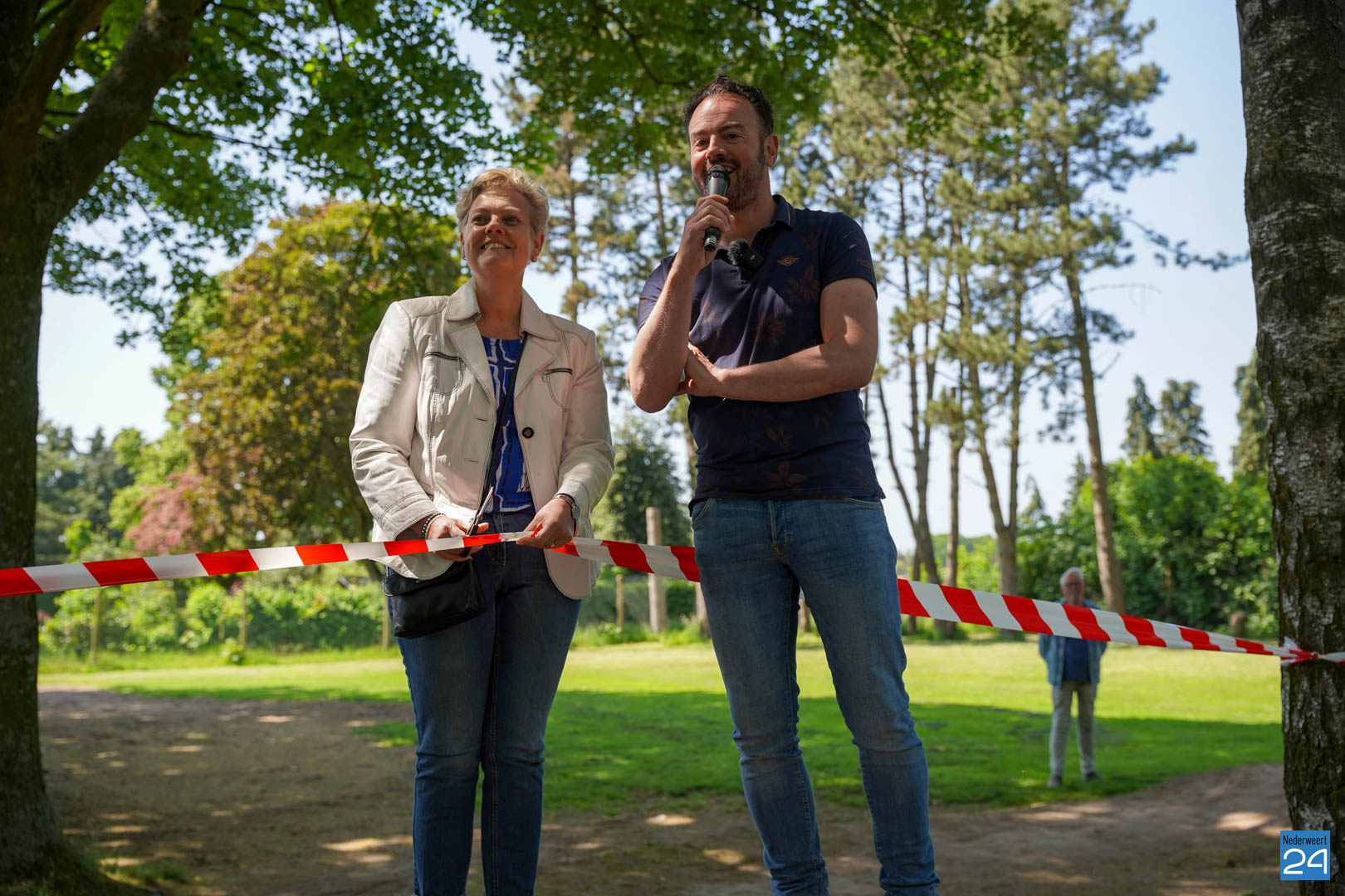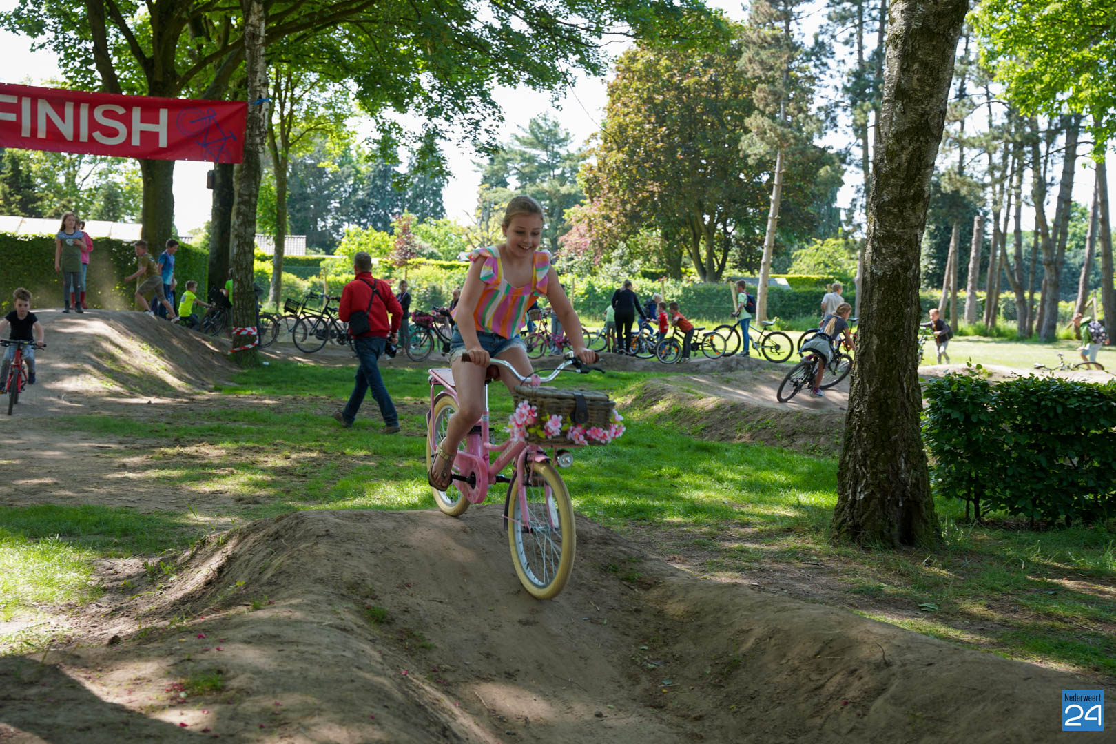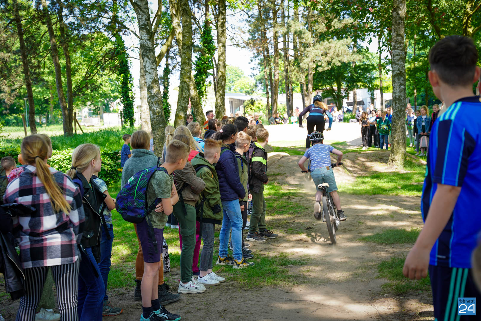 Het was feest vrijdagmiddag op het speelveldje tegenover basisschool De Schrank in Ospel. Daar werd het splinternieuwe fiets-crossbaantje geopend.