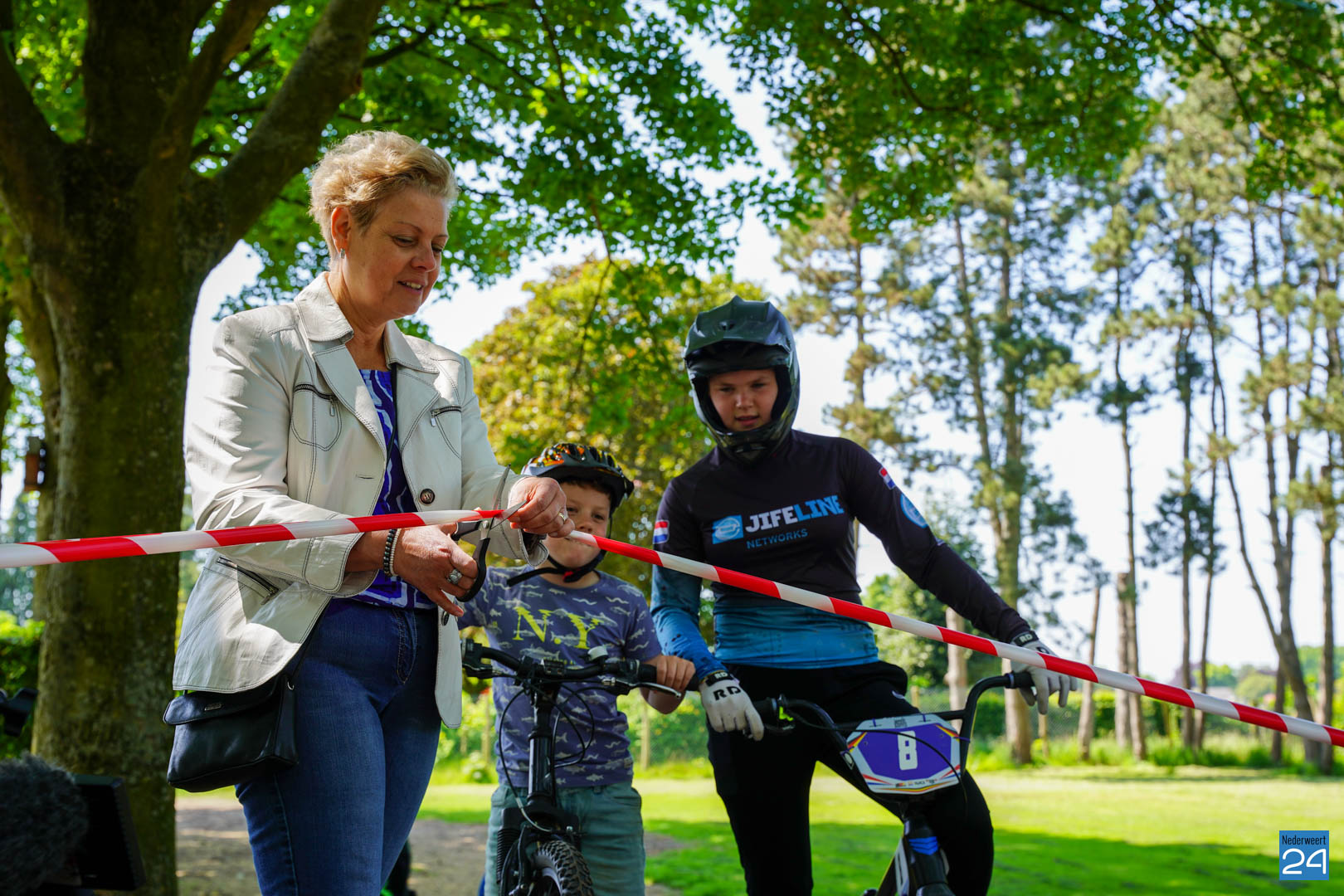 Na een openingswoord van initiatiefnemer Bas, een woordje en inzegening door Pastoor Koumans, werd het lint doorgeknipt door wethouder Dieteren en kon er gecrosst worden. Professioneel BMX’er Isa van der Velden ging als allereerste samen met Sem de baan op.