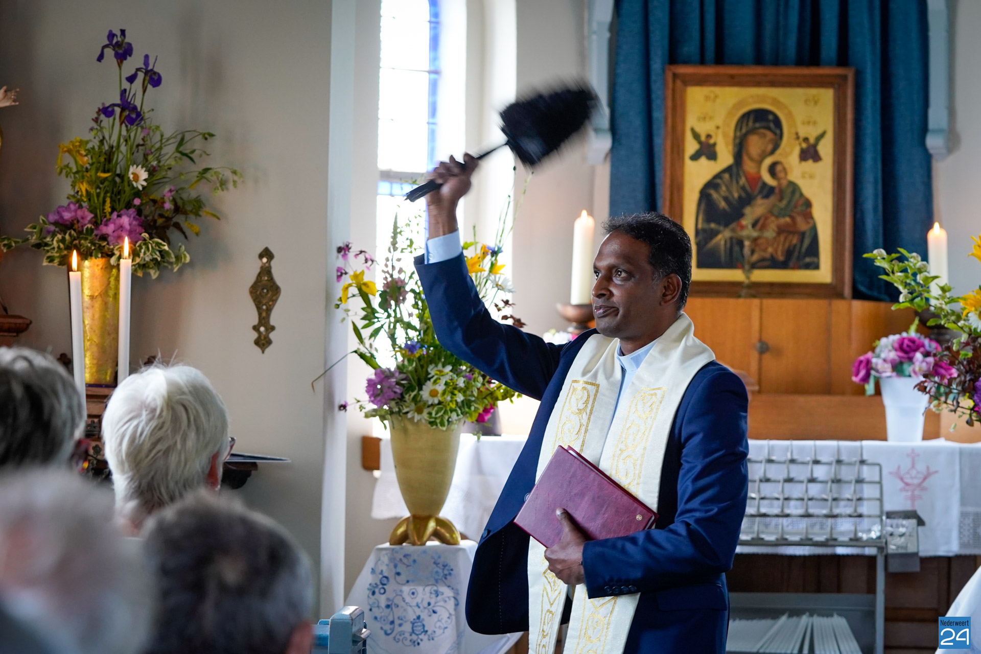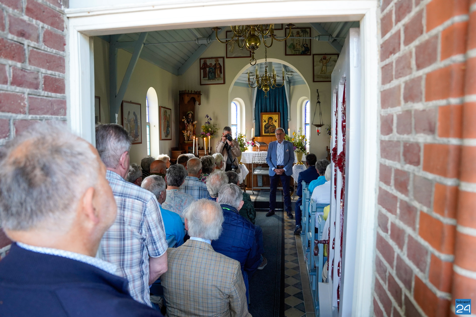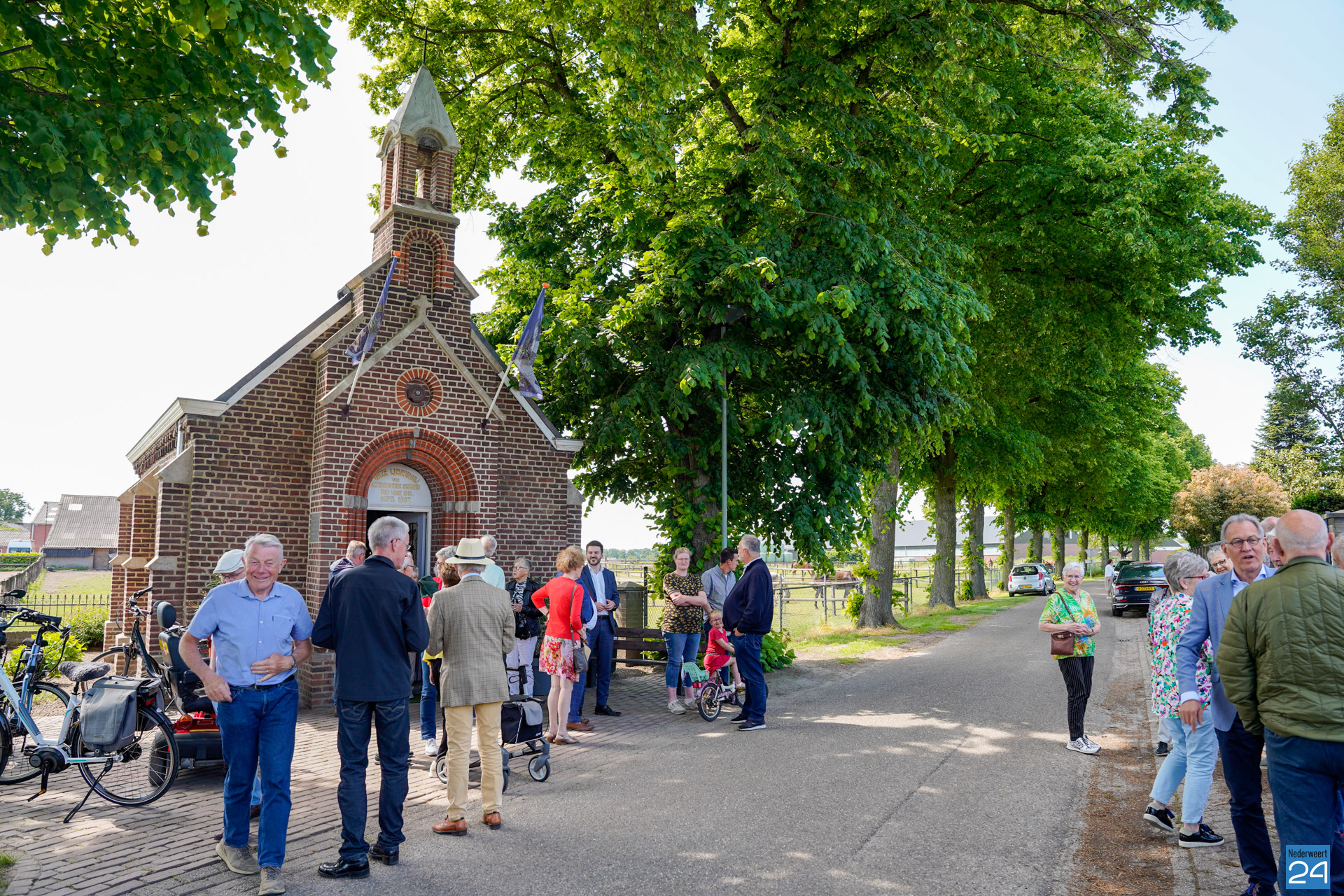 De plechtige herinzegening vond plaats onder wat men noemt ‘gezegende weersomstandigheden’ op zaterdagmiddag 27 mei 2023. Dat gebeurde door de Nederweerter pastoor Sebastian Eriyangalath, ter vervanging van zijn Ospelse collega Koumans die op 1 mei j.l. van de bisschop leeftijdsontslag kreeg en wegens familie-omstandigheden verhinderd was. Daaraan vooraf ging een welkomstwoord door Henk Hermans als vertegenwoordiger van het Federatiebestuur van de Nederweerter parochies en speeches van Boris Meessen (de kortgeleden benoemde wethouder erfgoedzaken van Nederweert) en van Ad Roest, gedeputeerde van de Provincie Limburg (en goed bekend met Nederweert in zijn rol als provinciaal bestuurlijk toezichthouder bij het verscherpte toezicht op de problemen met de erfgoedzorg dat het gemeentebestuur van Nederweert in 2022 werd opgelegd). De kapel was tot de laatste zitplaats gevuld met belangstellenden. De Nederweerter erfgoedgemeenschap en de Stichting Kruisen en Kapellen in Limburg waren vertegenwoordigd door de voorzitter van de Stichting Geschiedschrijving Nederweert