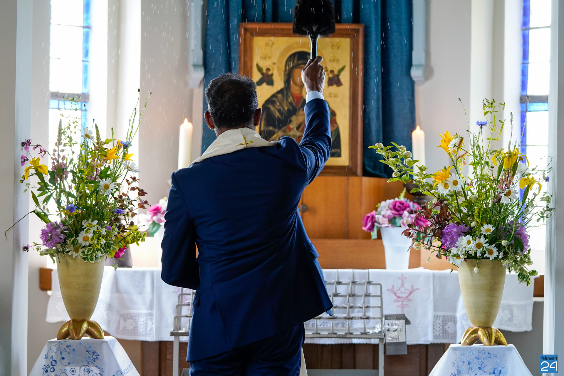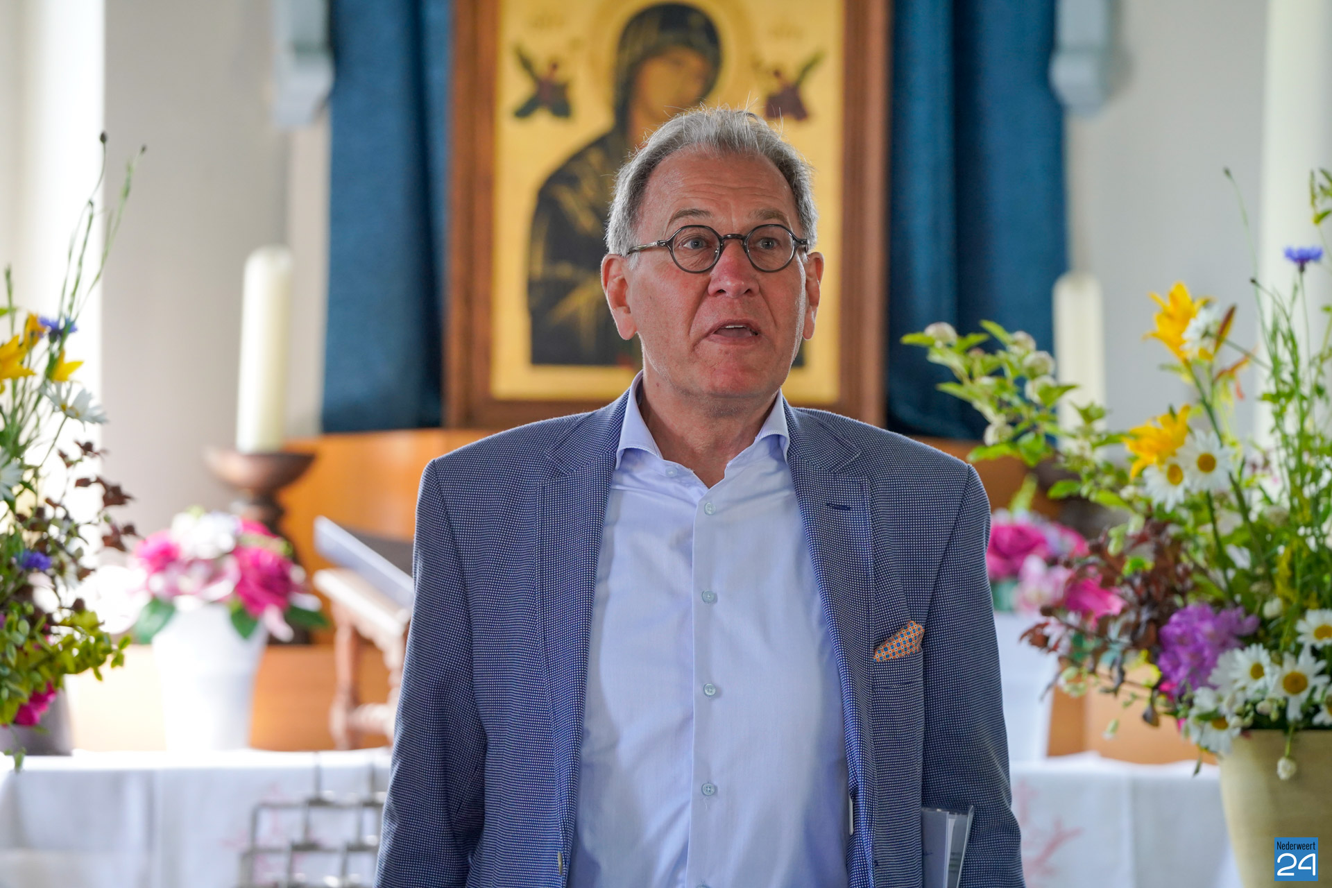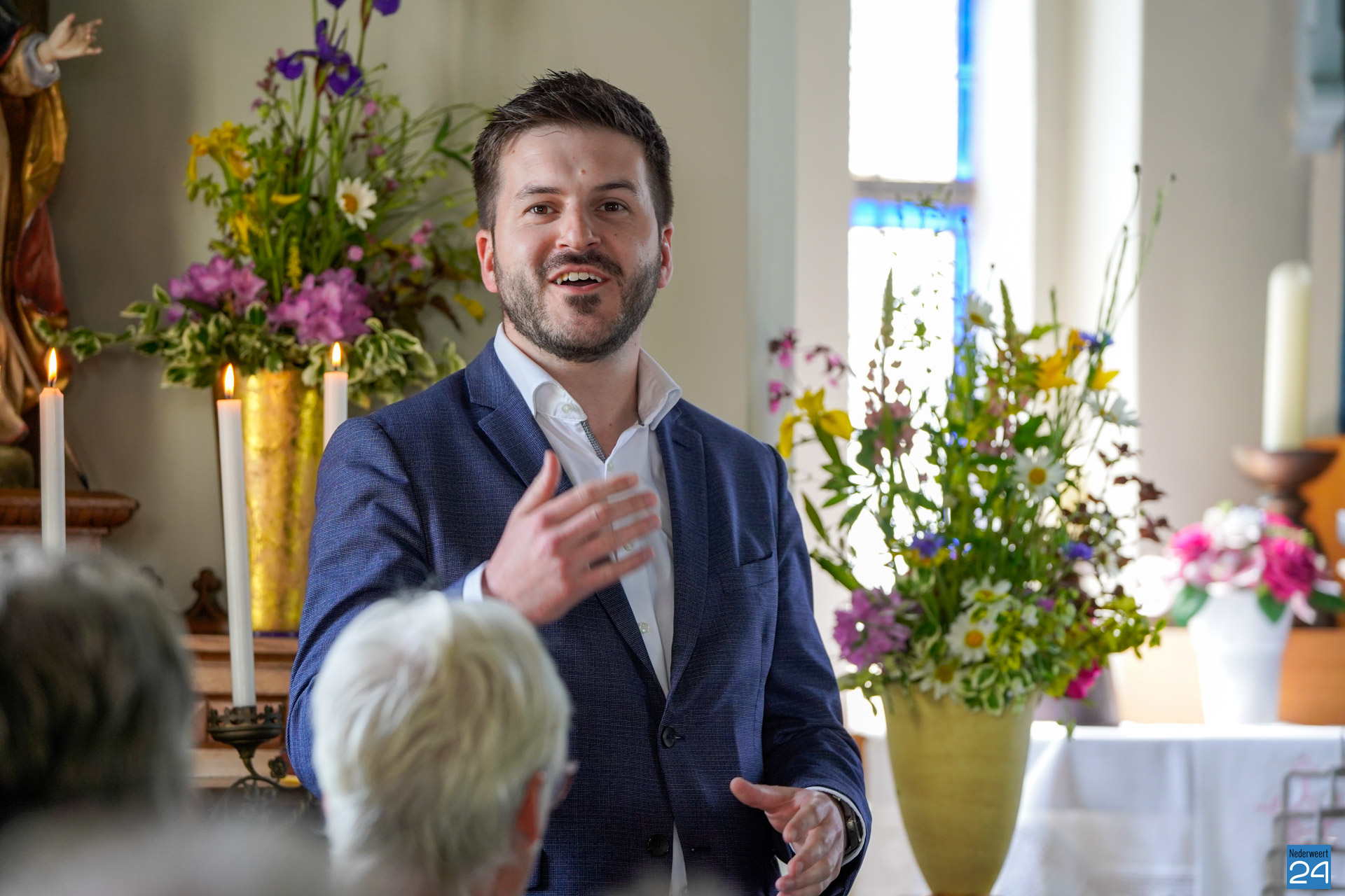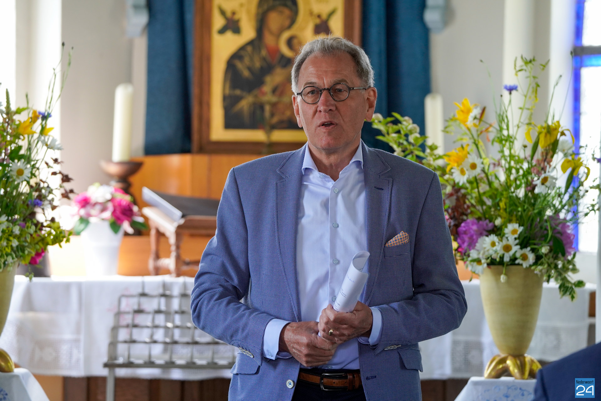 De plechtige herinzegening vond plaats onder wat men noemt ‘gezegende weersomstandigheden’ op zaterdagmiddag 27 mei 2023. Dat gebeurde door de Nederweerter pastoor Sebastian Eriyangalath, ter vervanging van zijn Ospelse collega Koumans die op 1 mei j.l. van de bisschop leeftijdsontslag kreeg en wegens familie-omstandigheden verhinderd was. Daaraan vooraf ging een welkomstwoord door Henk Hermans als vertegenwoordiger van het Federatiebestuur van de Nederweerter parochies en speeches van Boris Meessen (de kortgeleden benoemde wethouder erfgoedzaken van Nederweert) en van Ad Roest, gedeputeerde van de Provincie Limburg (en goed bekend met Nederweert in zijn rol als provinciaal bestuurlijk toezichthouder bij het verscherpte toezicht op de problemen met de erfgoedzorg dat het gemeentebestuur van Nederweert in 2022 werd opgelegd). De kapel was tot de laatste zitplaats gevuld met belangstellenden. De Nederweerter erfgoedgemeenschap en de Stichting Kruisen en Kapellen in Limburg waren vertegenwoordigd door de voorzitter van de Stichting Geschiedschrijving Nederweert