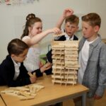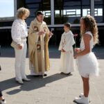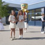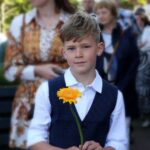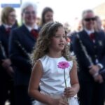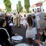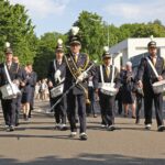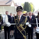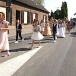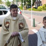 Onder een stralende zon liep de groep kinderen vanuit basisschool De Schrank, onder muzikale begeleiding van harmonie Melodie der Peel, vanuit school naar de kerk.
