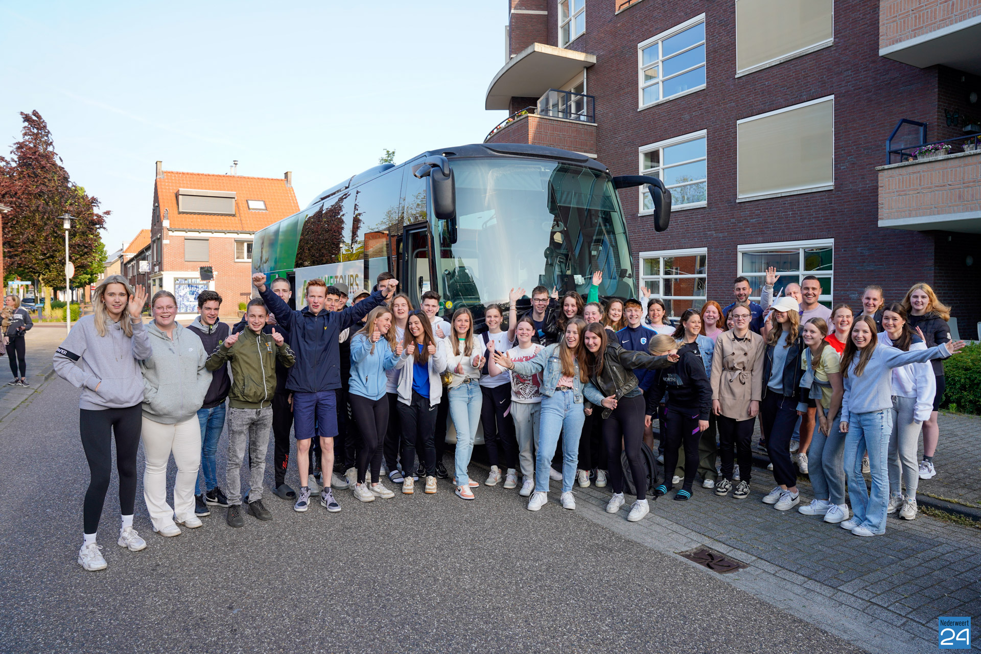 Om 7.15 uur werden de leerlingen verwacht bij de touringcar tegenover de school. Natuurlijk waren de ouders hierbij ook aanwezig voor een knuffel en om het gezelschap uit te zwaaien. Na de lange busrit staat een divers programma te wachten. Zo gaan ze fietsen en bezoeken ze leuke bezienswaardigheden.