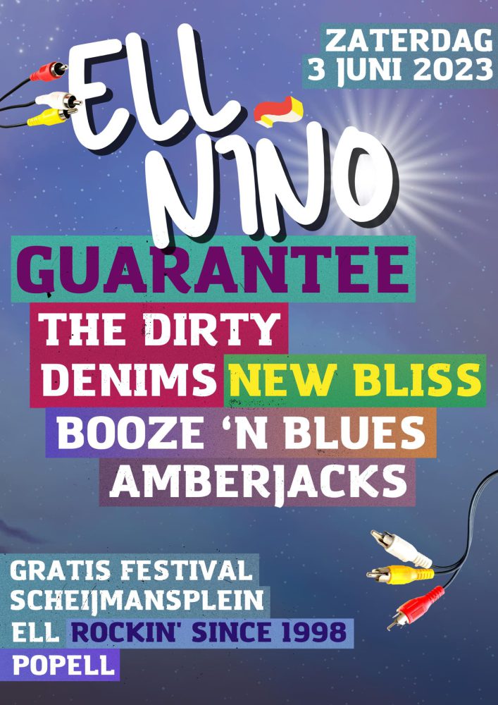 Op het podium staan dit jaar de bands Amberjacks, Booze ’n Blues, The Dirty Denims en New Bliss. Ell Niño wordt knallend afgesloten door feestband Guarantee! Van southern rock tot alternatieve pop/rock en van de blues tot happy hardrock. Een goed gevuld programma dus met Limburgse bands en artiesten en een enorme afwisseling tussen verschillende muziekstijlen in de rockscene!