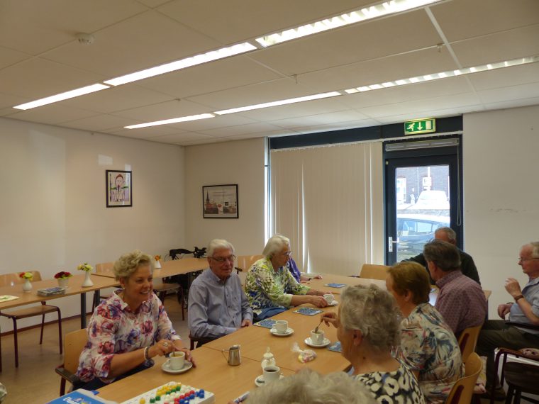 Op dinsdag 6 juni verrast wethouder Carla Dieteren de Huiskamer met een bezoek in de nieuwe ruimte in de Pinnenhof. De gasten van de Huiskamer lieten zich niet onbetuigd in een leuk gesprek met de wethouder. Deze kreeg daardoor een goede indruk van wat de Huiskamer en haar vrijwilligers voor elkaar betekenen. Zonder de deelnemers is er geen Huiskamer en zonder vrijwilligers is er ook niets mogelijk. De foto’s tonen een geïnteresseerde wethouder in gesprek met de gasten en vrijwilligers.