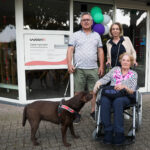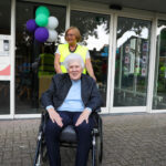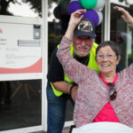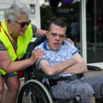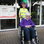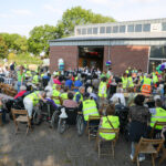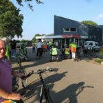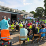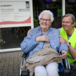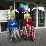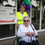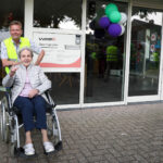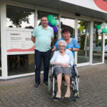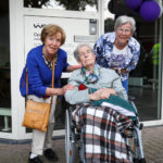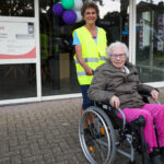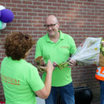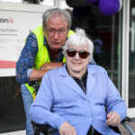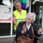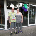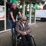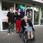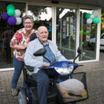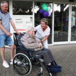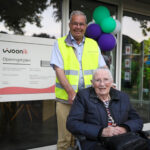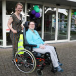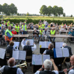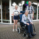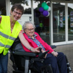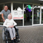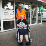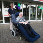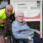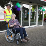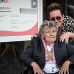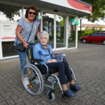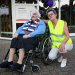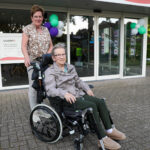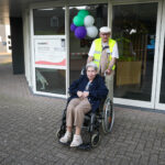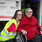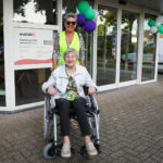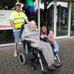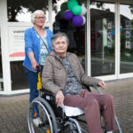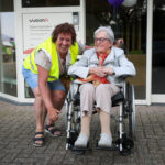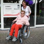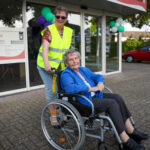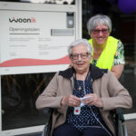 Bij het gebouw van de woningbouwvereniging Woonik aan de Gutjesweg in Budschop was een pauzeplaats ingericht. Hier stond een kopje koffie en een stukje vlaai klaar voor alle rolstoelers en hun begeleiders. Onder het genot van de muziek van Blaoskepèl Speulender-Wieës Neewieert werd er volop genoten van de lekkernij en het samenzijn.