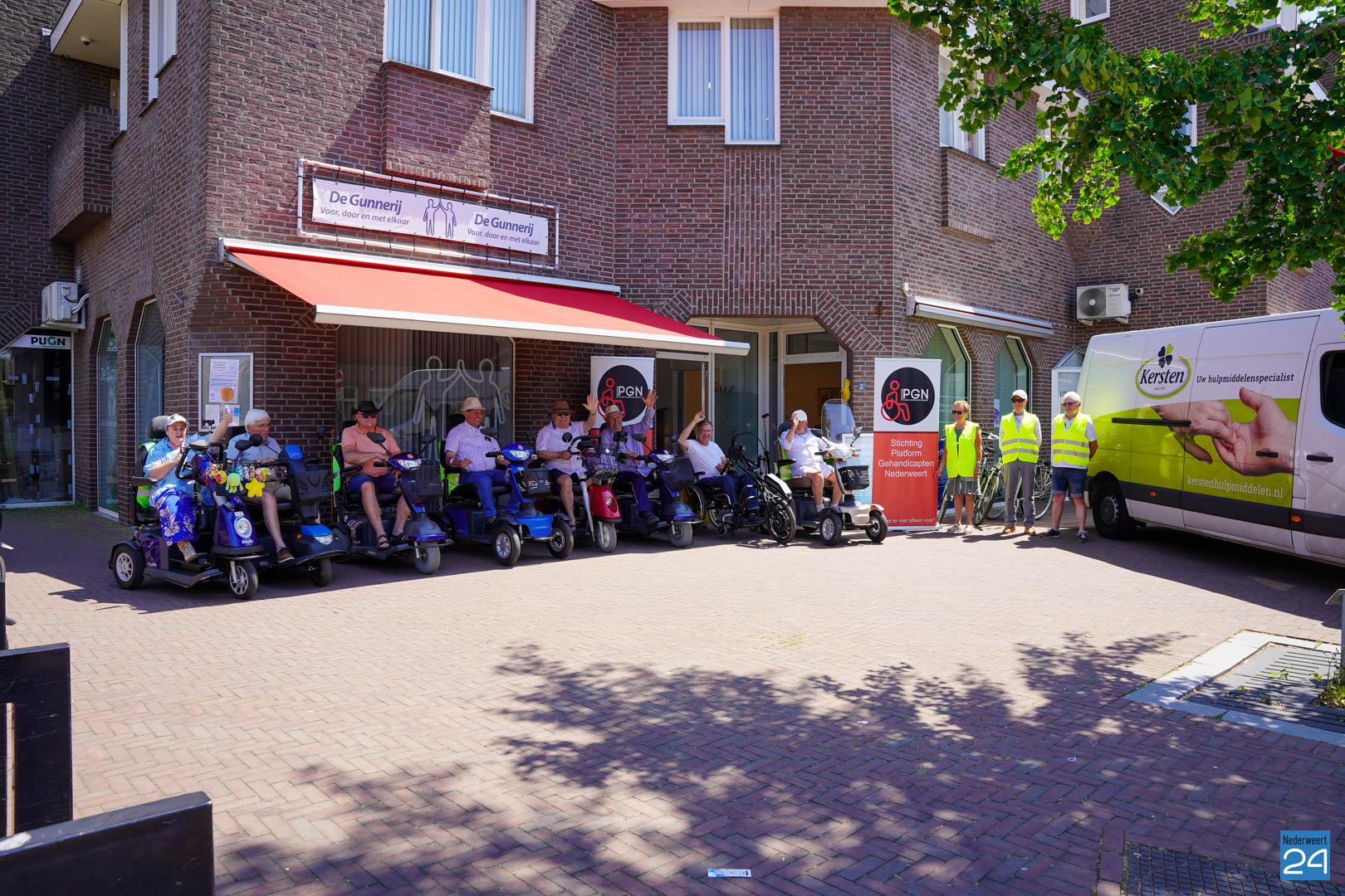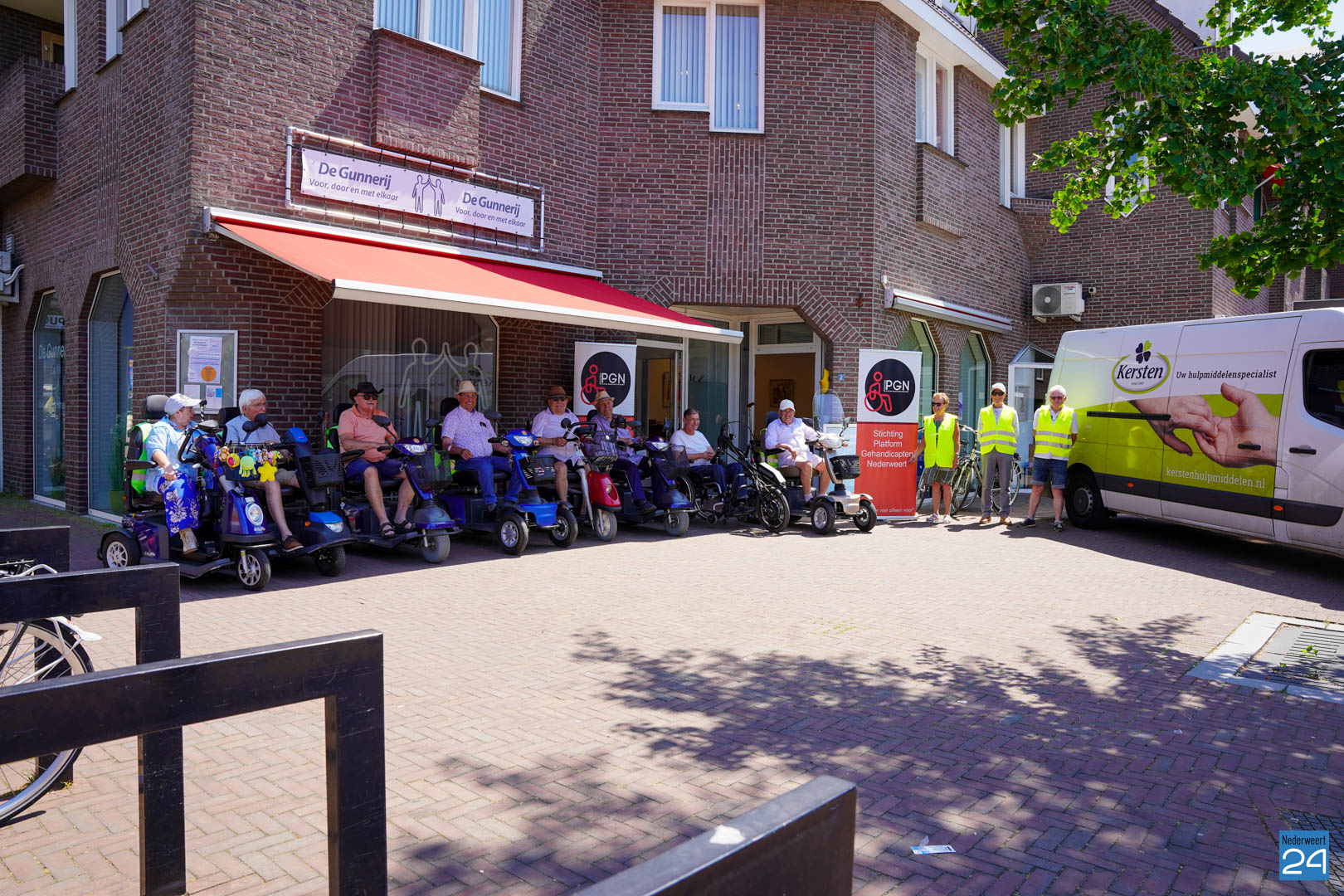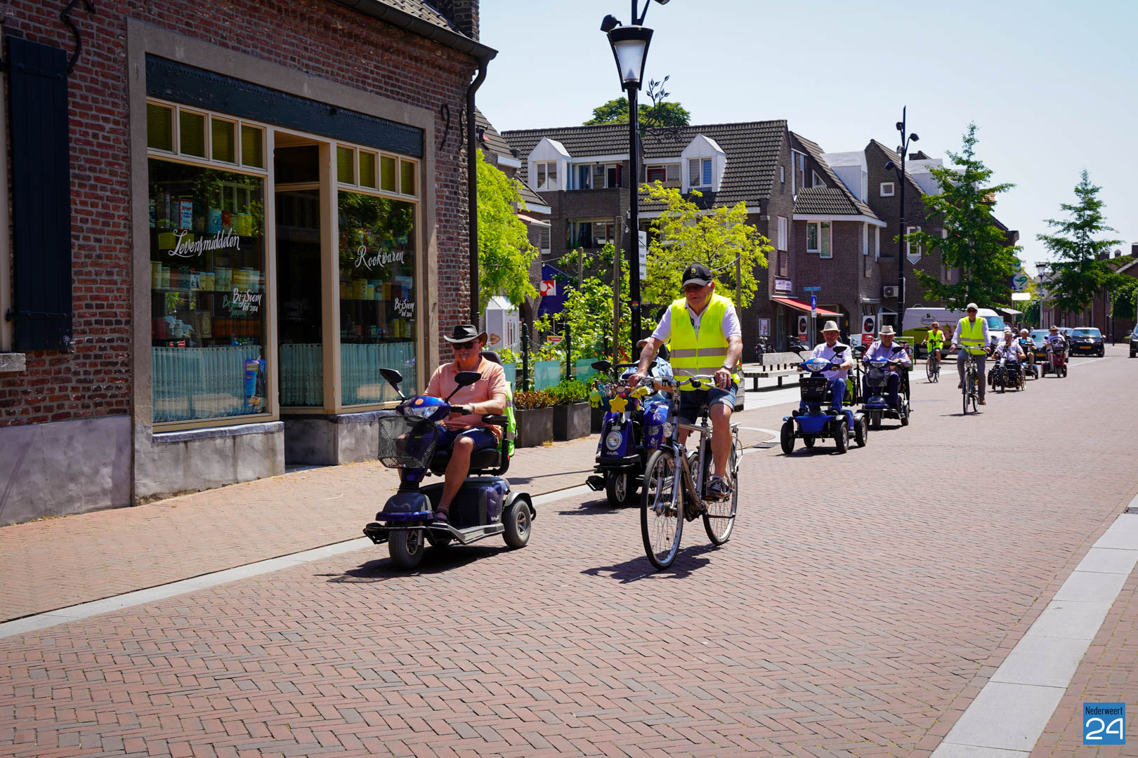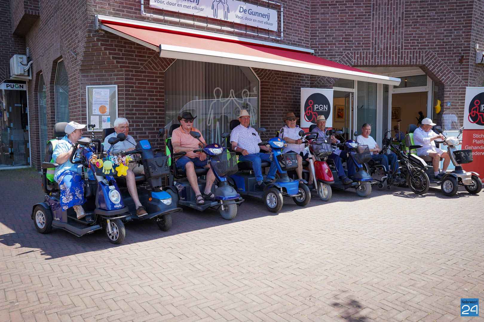 Een groep mensen, die afhankelijk zijn van een scootmobiel, gaan er samen op uit tijdens tochten van ongeveer 25 km. In de omgeving van Nederweert, rondom de kerktoren van het dorp. De groep start bij de Gunnerij, halverwege zullen ze een pauze stop hebben. Deze vinden meestal plaats bij lokale terrassen waar er ruimte is om de scootmobielen te kunnen parkeren. Er wordt van een warm of fris drankje genoten en verhalen met elkaar gedeeld. De firma Kersten ondersteunt in de voorbereiding. De bandenspanning wordt optimaal in orde gebracht en eventueel een accu wordt doorgemeten.