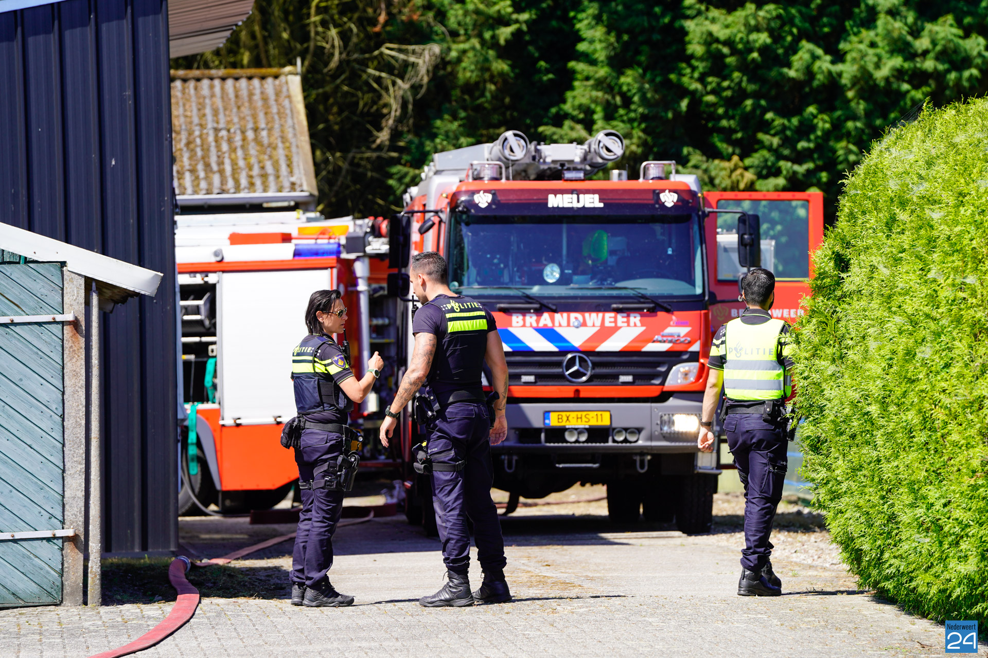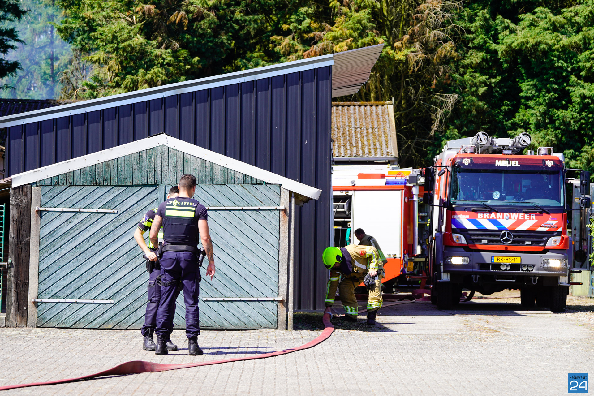 Meerdere naaldbomen in een bos achter een perceel aan Heide in Roggel hebben woensdag aan het einde van de ochtend vlam gevat.