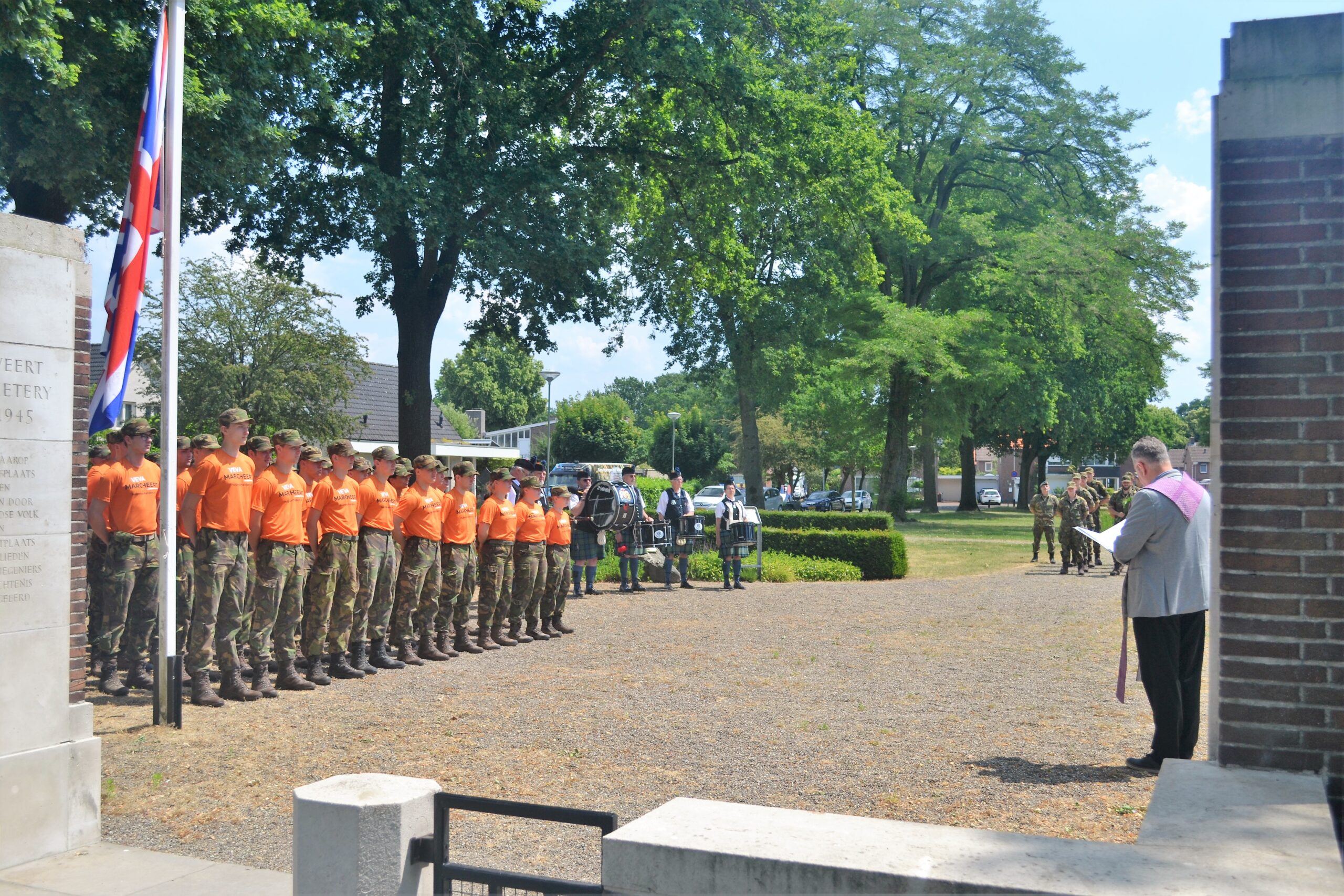 Donderdag 15 juni brachten de leerlingen van het ROC Roermond een bezoek aan de Britse begraafplaats in Nederweert. In de week voor Veteranendag marcheren MBO studenten met hun instructeurs van de opleiding Veiligheid en Vakmanschap (VeVa) voor onze helden. Een mars die in de omgeving van het eigen Regionale Opleiding Centrum wordt gelopen.