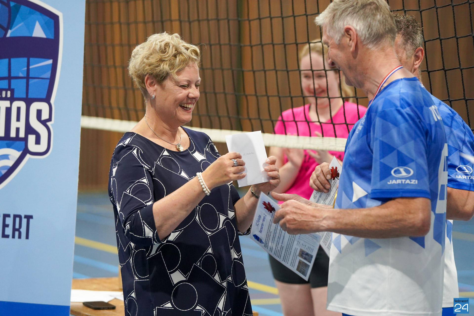 Op donderdagavond 15 juni werd door VC Fortutas het binnensport seizoen 22-23 afgesloten met een intern volleybal toernooi in sporthal de Bengele. Voorafgaand aan dit toernooi werden de kampioenen van Fortutas Recreanten Heren 2 in het zonnetje gezet. Wethouder Dieteren en voorzitter Niek Creemers spraken mooie woorden voor de kampioenen en de heren ontvingen een mooie attentie en oorkonde en gingen daarna op de foto. Voor VC Fortutas was het tien jaar geleden dat er nog eens een recreanten team kampioen werd.