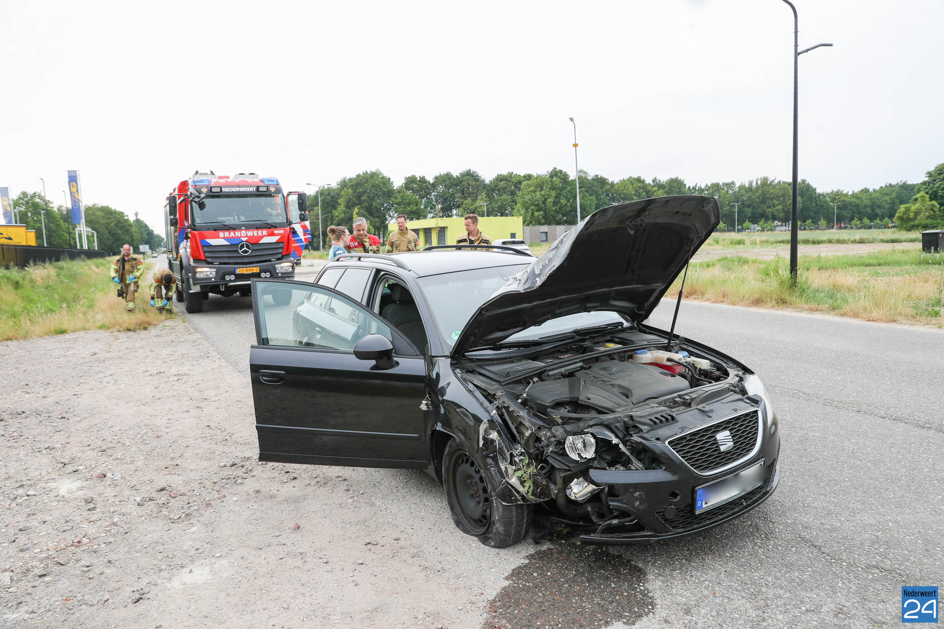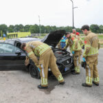 Omdat er wat rook vrijkwam bij de auto werd de brandweer opgeroepen. Deze hebben het voertuig veiliggesteld maar hoefde niet te blussen.