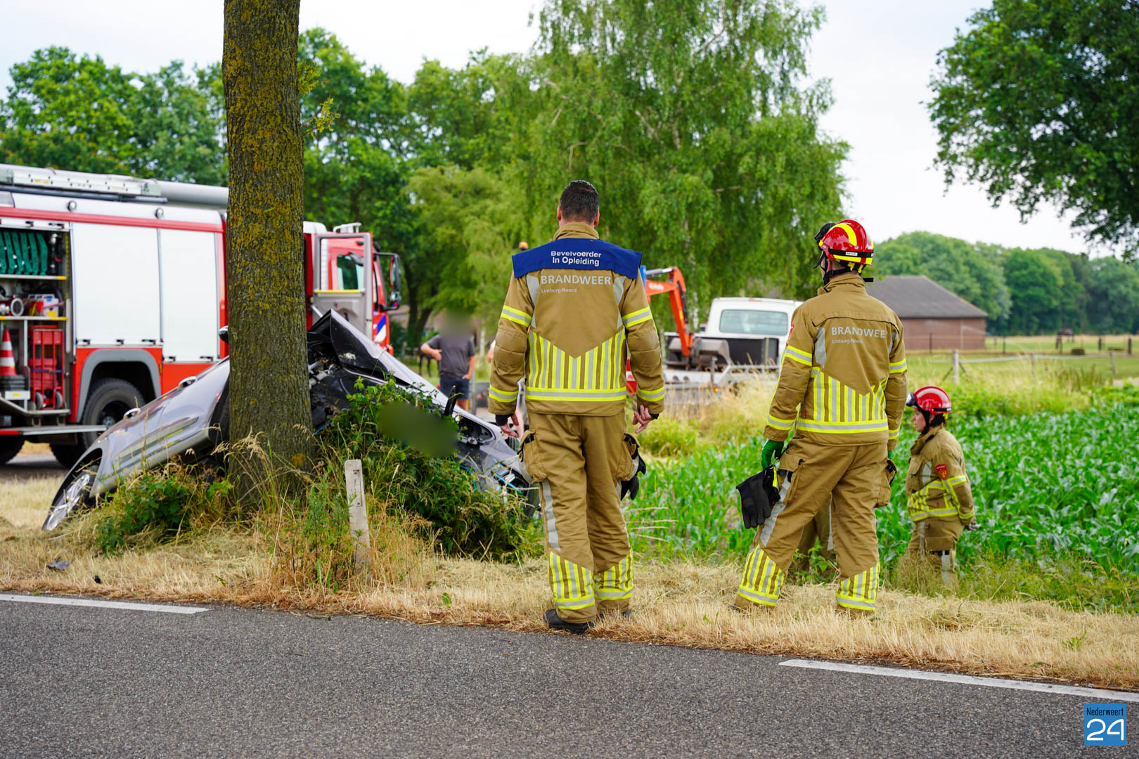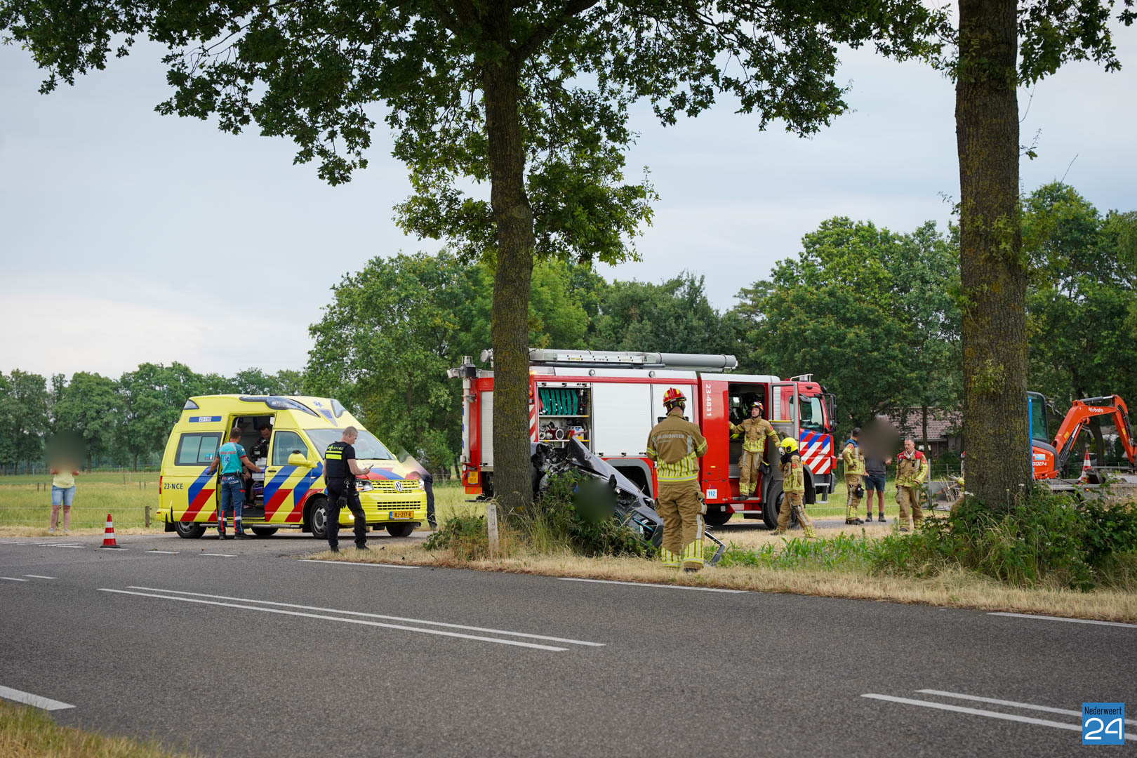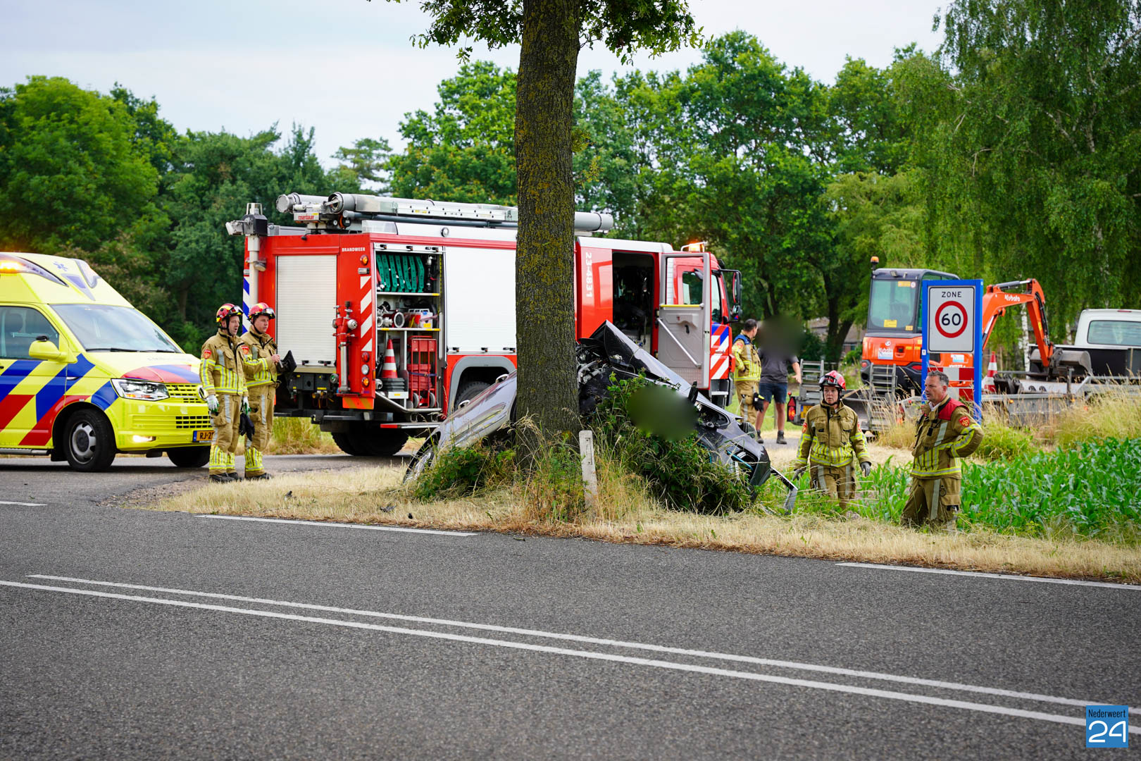 Het ongeval gebeurde ter hoogte van de Peelweg, waar een bedrijfsvoertuig met oplegger af wilde draaien. De bestuurder van de auto probeerde uit te wijken maar verloor hierbij de macht over het stuur en botste tegen de boom aan. Politie, ambulance en ook de brandweer werden opgeroepen.