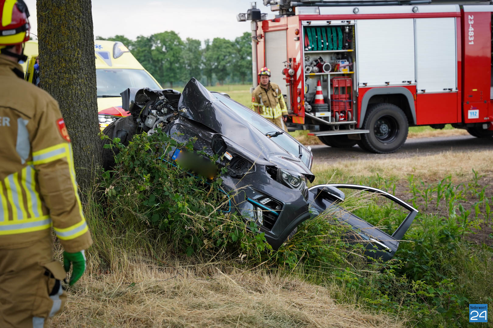 Auto botst tegen boom op Nederweerterdijk in Meijel