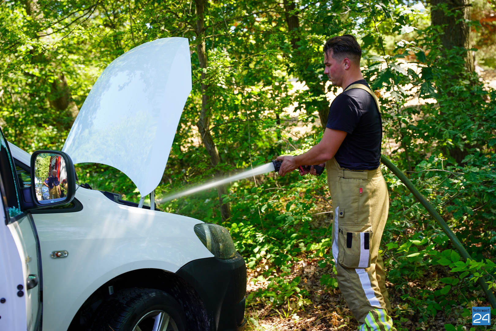 Op zaterdagmiddag stond er een bedrijfsbusje geparkeerd op de parkeerplaats bij Kids Plaza in Weert waarbij rook onder de motorkap vandaan kwam. Meteen werd de brandweer gealarmeerd.