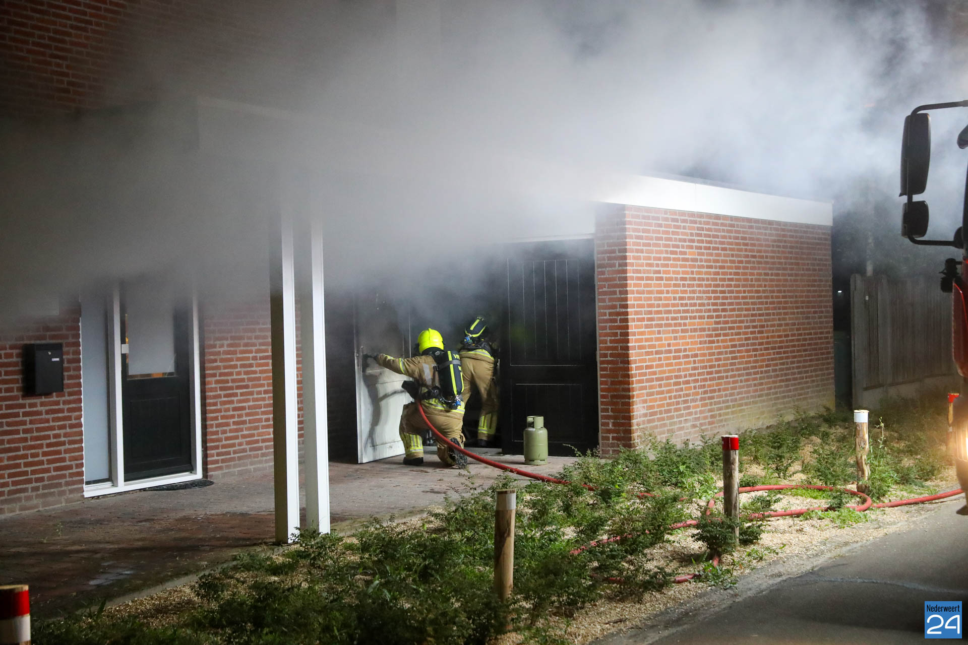 De brandweer van Nederweert was snel ter plaatse om het vuur te bestrijden. In de garage woede een stevige brand en volgens de bewoner stond er een gasfles binnen. Na de inzet van de brandweer was het vuur snel onder controle.