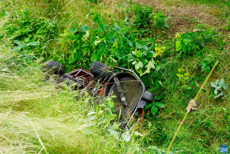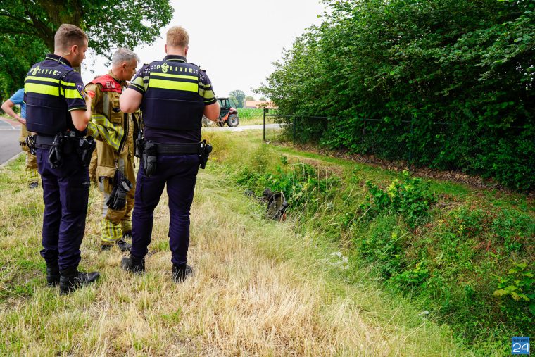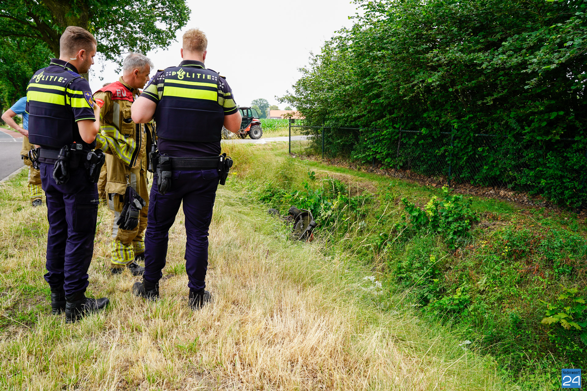 Een man is donderdag aan het begin van de middag met een grasmaaier op de kop in de sloot belandt aan de Booldersdijk in Nederweert.